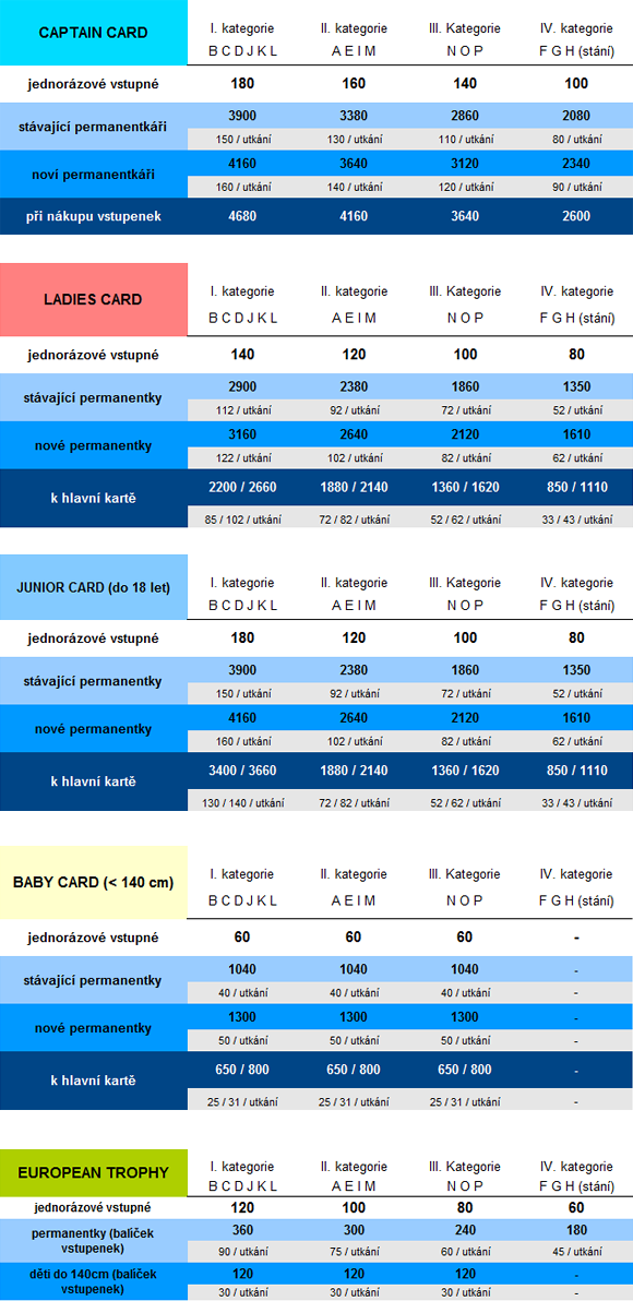 Kapitánskou kartu, což je základní permanentní vstupenka, si od pondělí 2. července 2012 můžete zakoupit také v internetové předprodejní síti Ticketstream (www.ticketstream.cz).