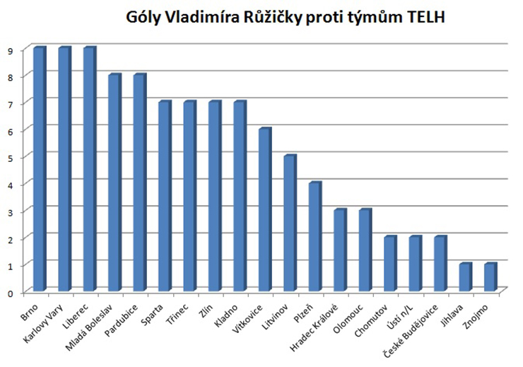 Má-li samotný Vladimír Růžička vybrat podle vlastního pocitu tým, na který se mu střelecky nejvíc daří, tápe. Naopak u neoblíbeného soupeře příliš neváhá. „Žádný tým, proti kterému mi to střílí, si nevybavím,“ dumá marně. „Na druhou stranu vím, že třeba v Plzni se mi góly dávají nejhůř,“ jmenuje Západočechy, jimž vstřelil nedávno vůbec první gól v dresu Pirátů a čtvrtý celkově.