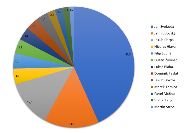druhém místě skončil Jan Rudovský s téměř patnácti procenty a třetí byl