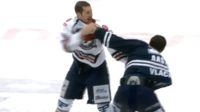 Běžela zrovna jednatřicátá minuta. Zápas byl akorát v polovině. Po menší šarvátce u Štěpána Hřebejka se k sobě dostali Palin s Vlachem. Oba znalí z působení v zámoří sundali rukavice i helmy a pustili se do sebe. Nejprve měl lehce navrch benátský hráč, ale po chvíli se karty obrátily a jasnou převahu získala chomutovská zahraniční posila Palin, který byl tedy vyhlášen jakýmsi vítězem souboje. Oběma hráčům byl udělen pětiminutový trest a k tomu ještě osobní trest do konce utkání. Poté, co oba odešli, si ještě za plexisklem sportovně podali ruce.