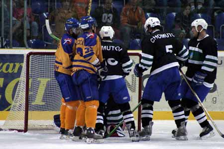 C h o m u t o v - Přinášíme vám několik exkluzivních fotografií z derby mezi Ústeckými Lvy a Chomutovem. Na fotografiích jsou zachyceny repliky historických dresů ze sezóny 1955/1956. Pro srovnání zveřejňujeme i dvě dobové fotky ze zmiňovaných let.