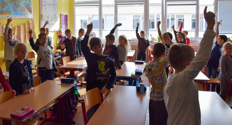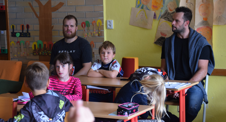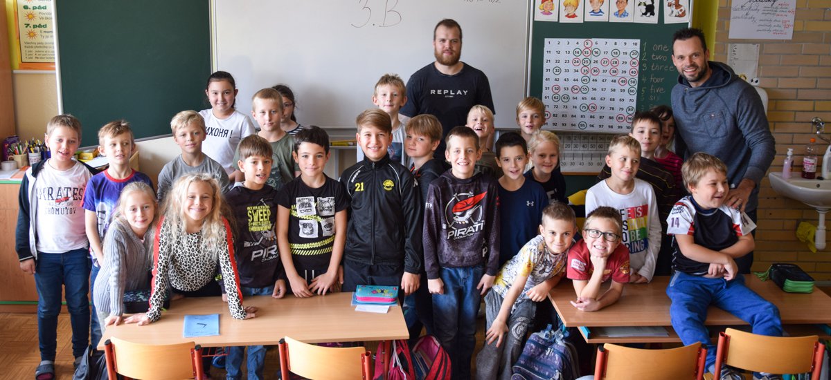On i jeho spolužáci si na Martina Rýgla s Janem Rudovským připravili zvídavé otázky. Mimo jiné zazněly oblíbené i neoblíbené týmy z NHL, oba hráči také prozradili, co rádi jí a dokonce si vyzkoušeli i orientaci na mapě České republiky, když ukazovali, odkud pochází a kde žijí.
