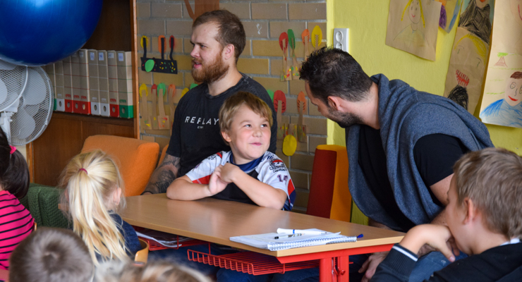 Nechyběly ani rady pro malé hokejisty stejně jako povzbuzení, aby navázali na současná působení odchovanců či dlouholetých hráčů v nejslavnější soutěži světa. „Ve školní lavici jsem hodně dlouho neseděl,“ přiznává Martin Rýgl s úsměvem. „Bylo to hrozně fajn. Překvapilo mě, jaké otázky děti napadly,“ doplňuje jej Jan Rudovský.
