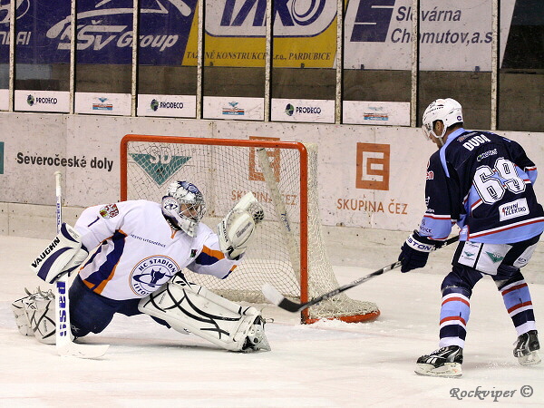 Chomutovská přesilovka 4 na 3 a na buly Radek Duda. | autor: Zdeněk Špinka