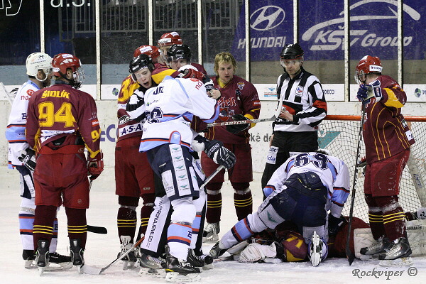 Radek Duda tentokrát branku nevstřelil i díky pohotovému Fialovi. | autor: Zdeněk Špinka