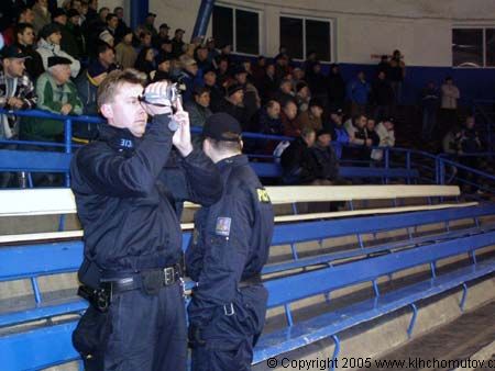 Bedlivým okem sledovala chování fanoušků policie.