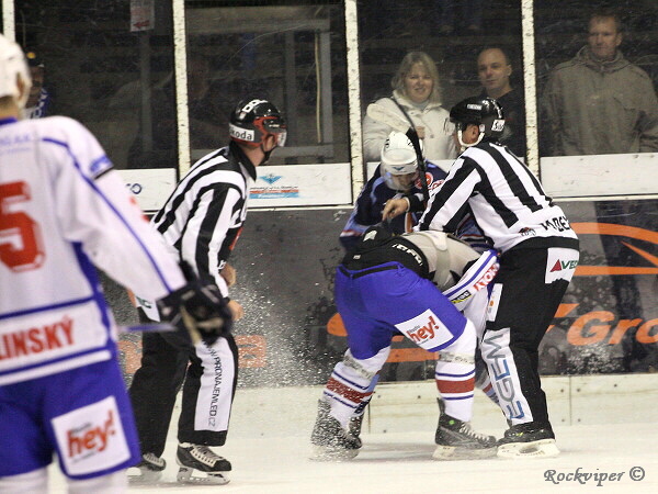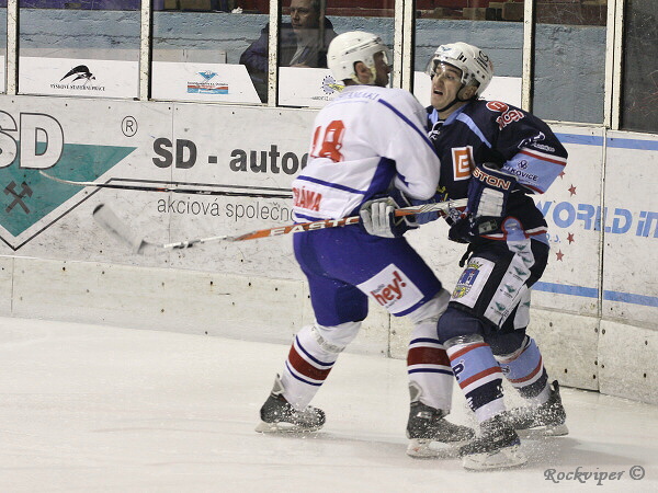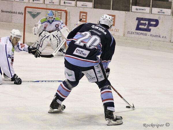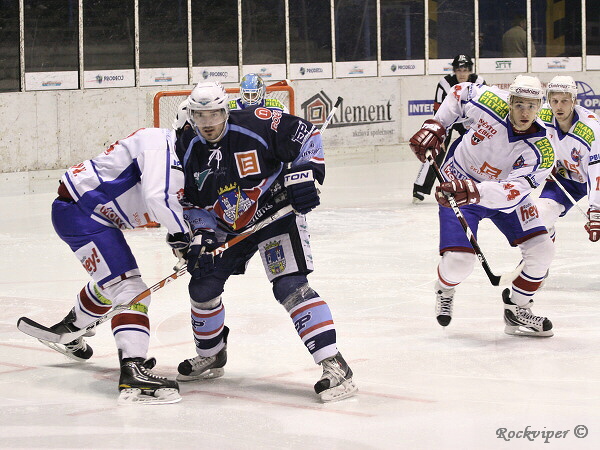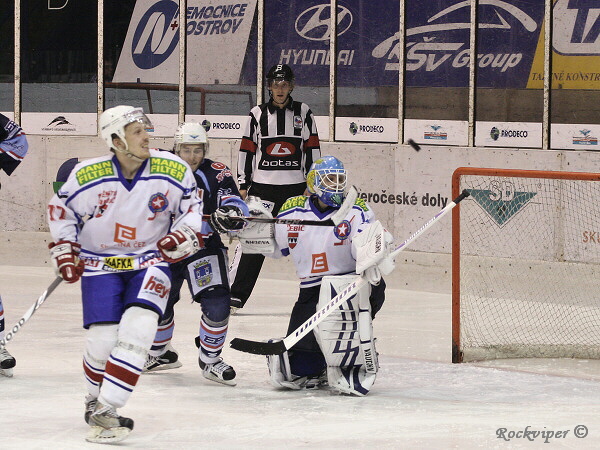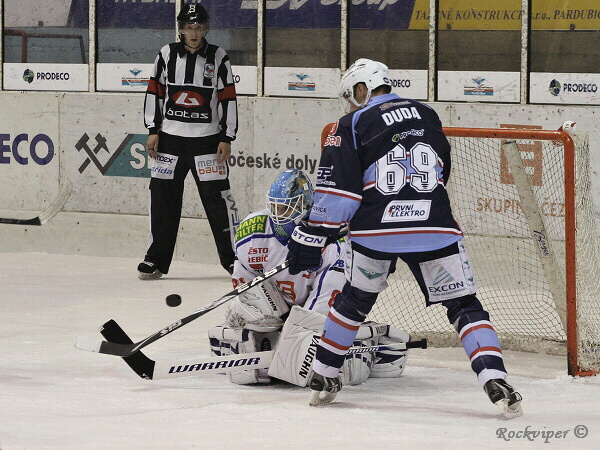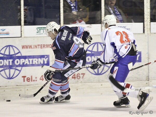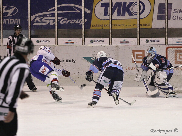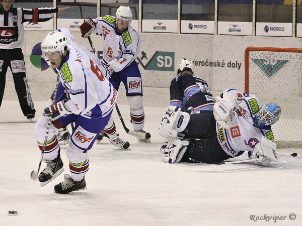 Jaroslav Kůs se hrnul do šance, ale byl nedovoleně atakován Hrbáčkem a o chvilku již hráli domácí přesilovou hru.