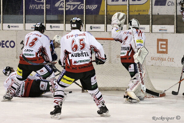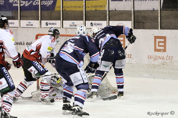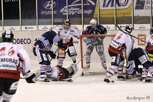 I v následující přesilové hře měli hosté několik šancí, zde v jedné z nich Semorád.