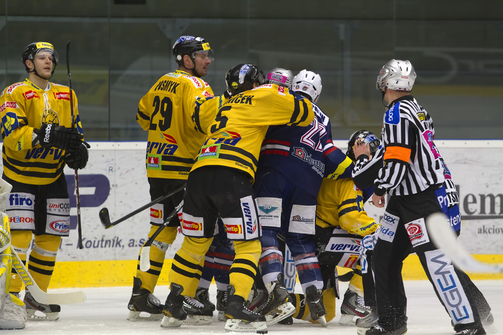 Úvodní buly čtvrtého duelu Pirátů s litvínovskou Vervou