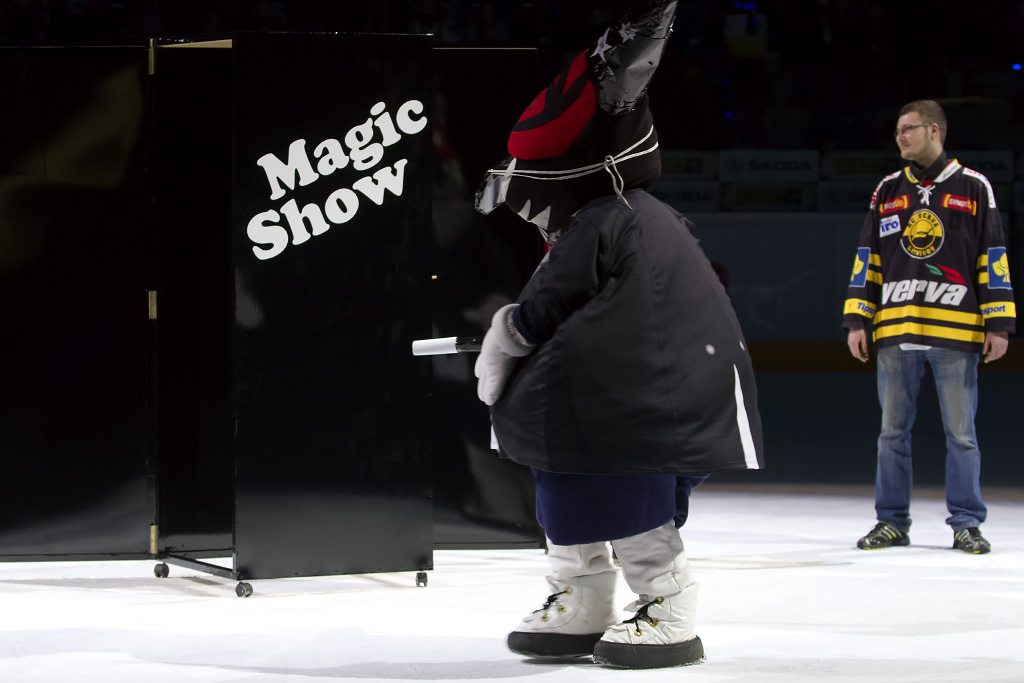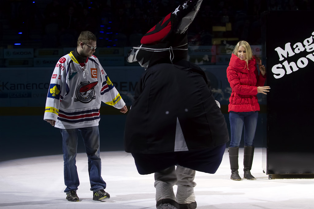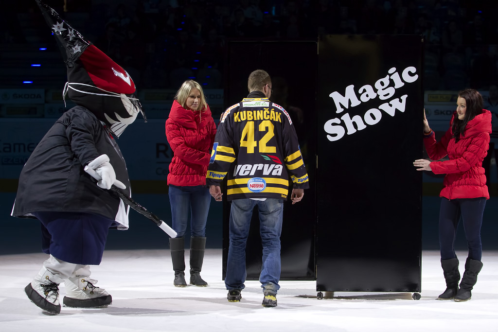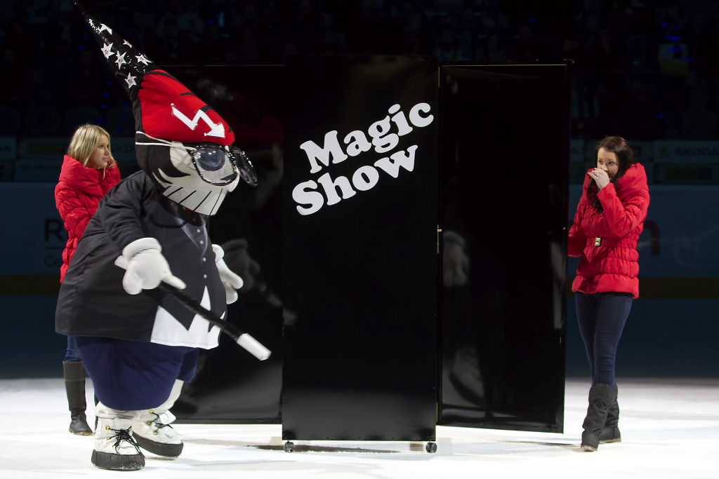 Sličně hostesky dovezli Picaroonovi na středový kruh kouzelnou skříň