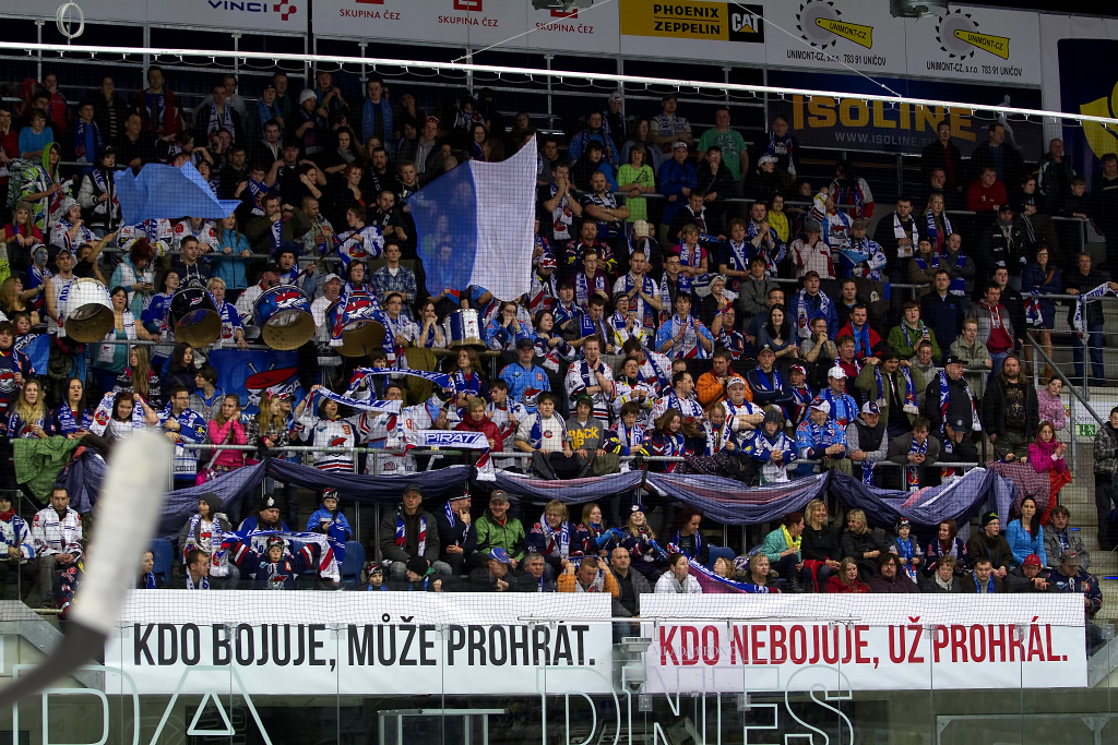 Fanoušci obnovili transparent se sloganem, který provázel Piráty během loňské cesty za postupem