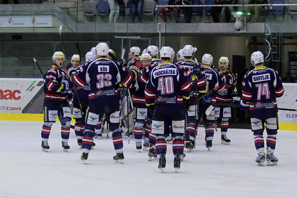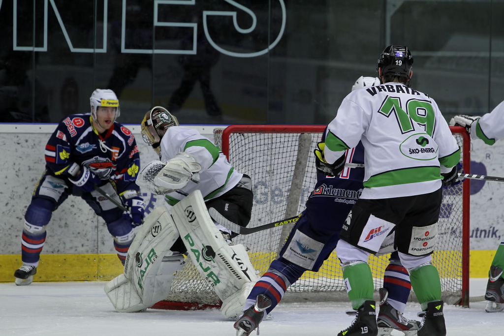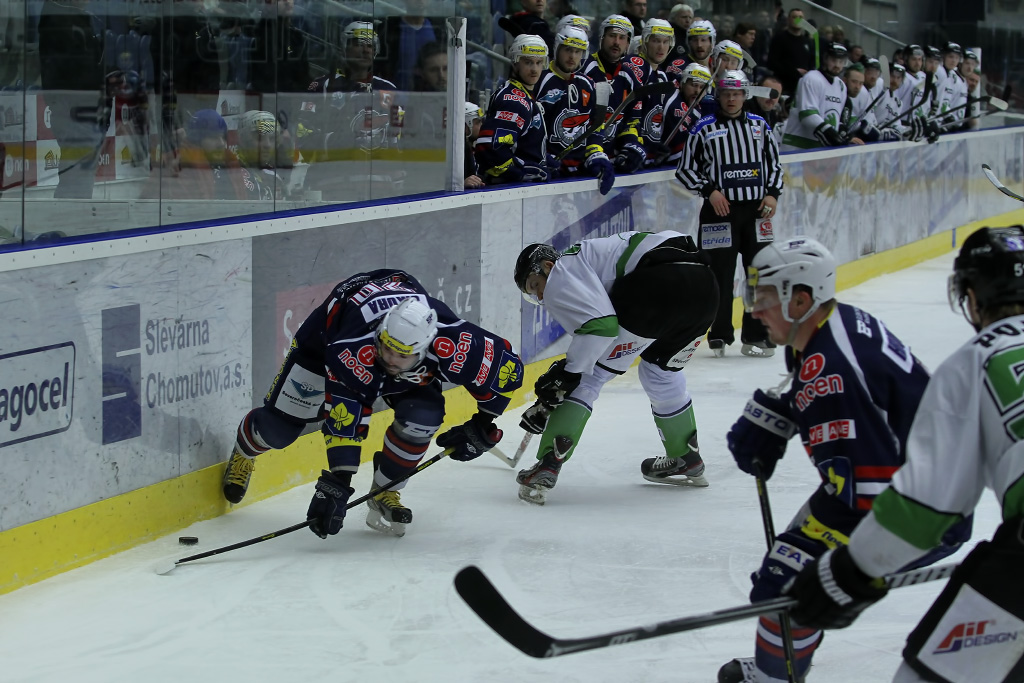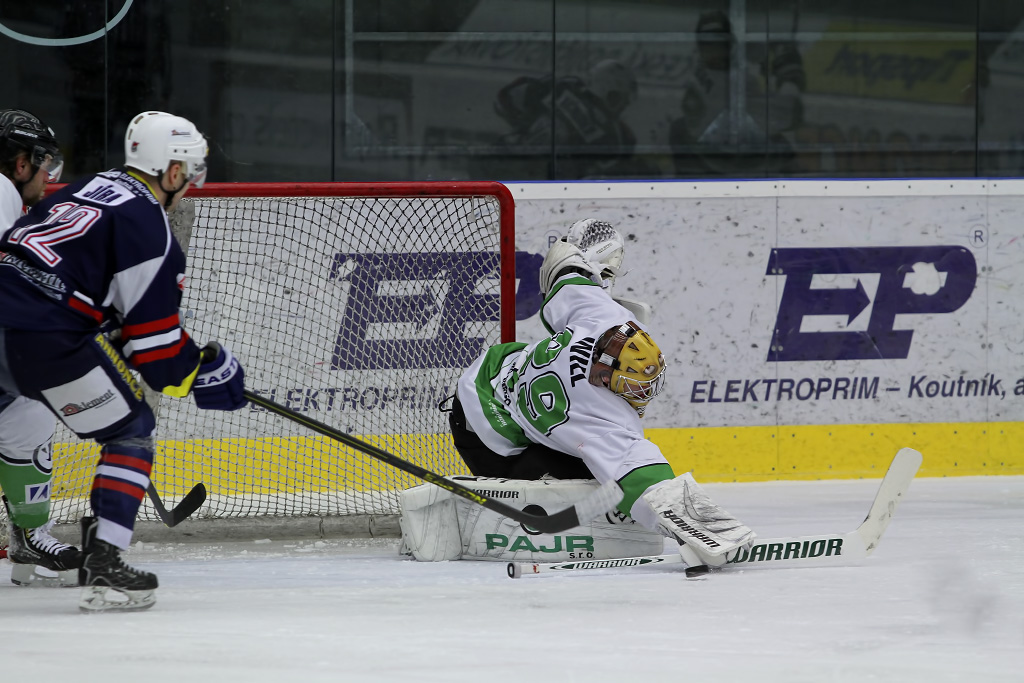 V cestě za gólem zabránil Marku Sikorovi Milna Toman, chomutovský centr se gólově prosadil v jiné situaci