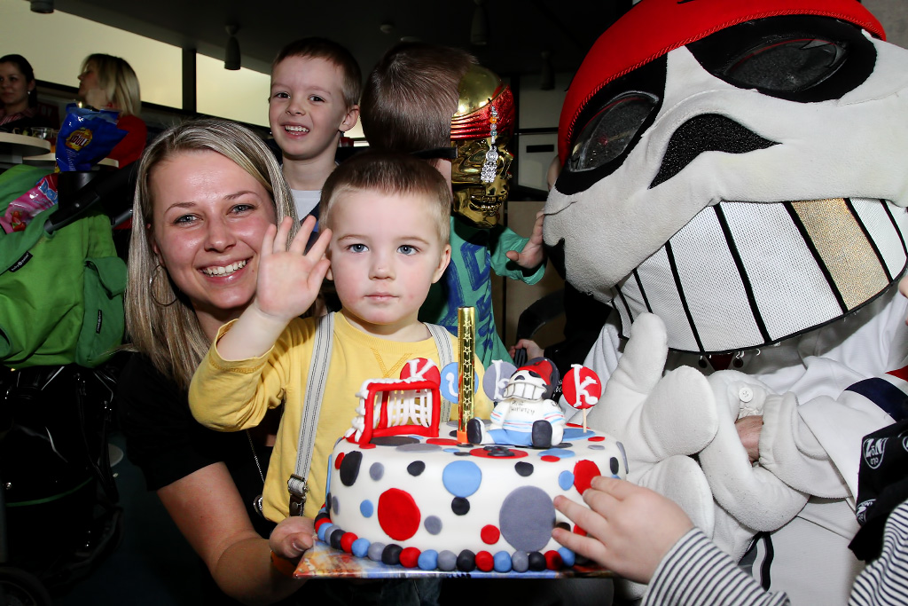 Daniel kořán si odnesl ze zápasu v Mladou Boleslaví narozeninový dort a fotka s Picaroonem mu bude připomínat významný den