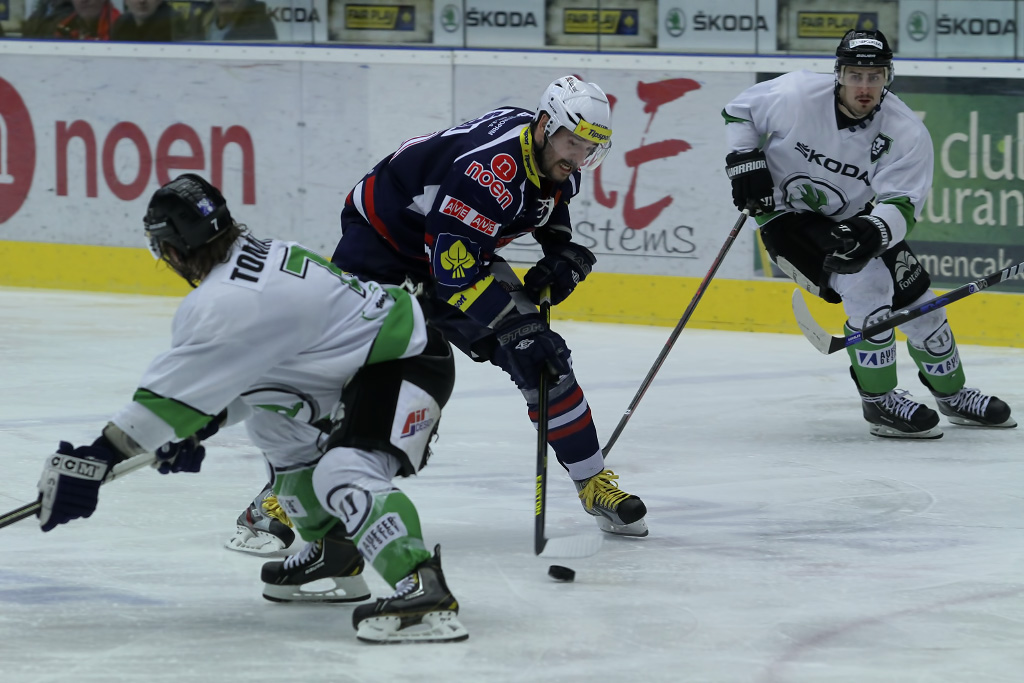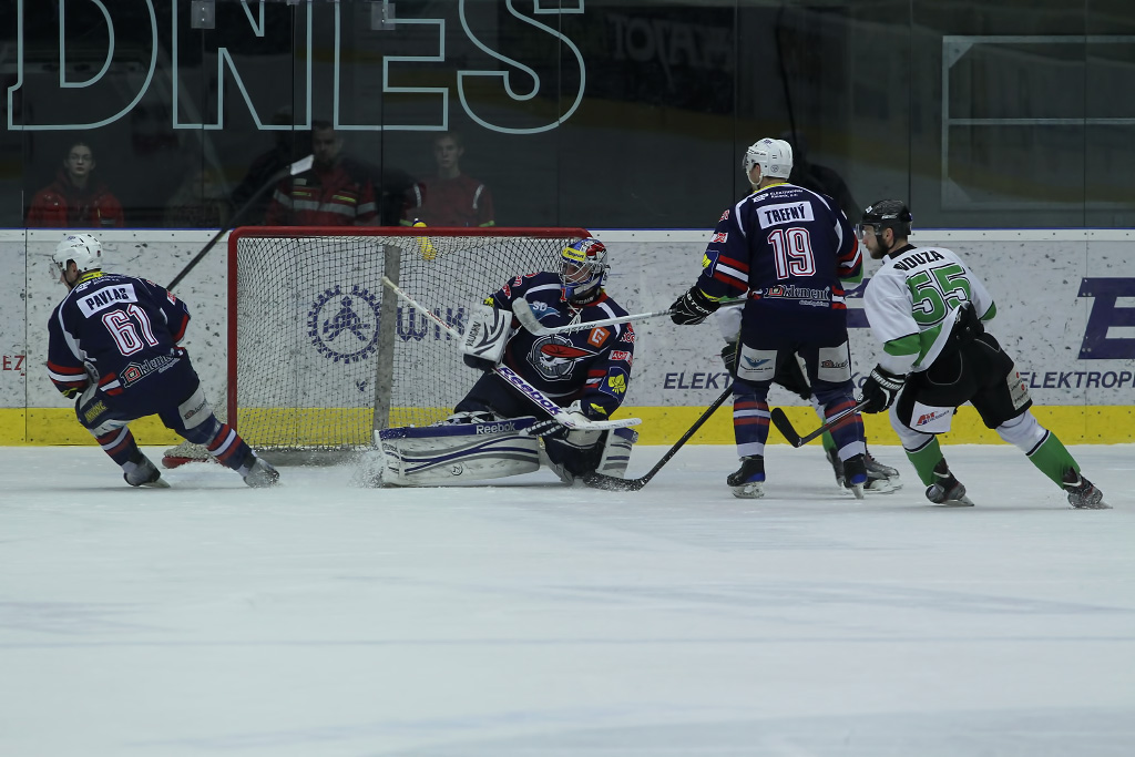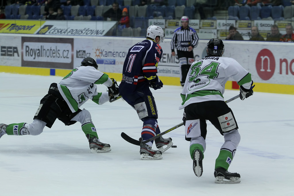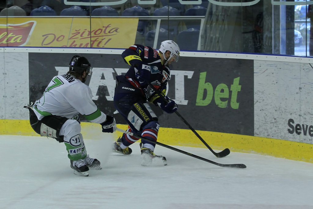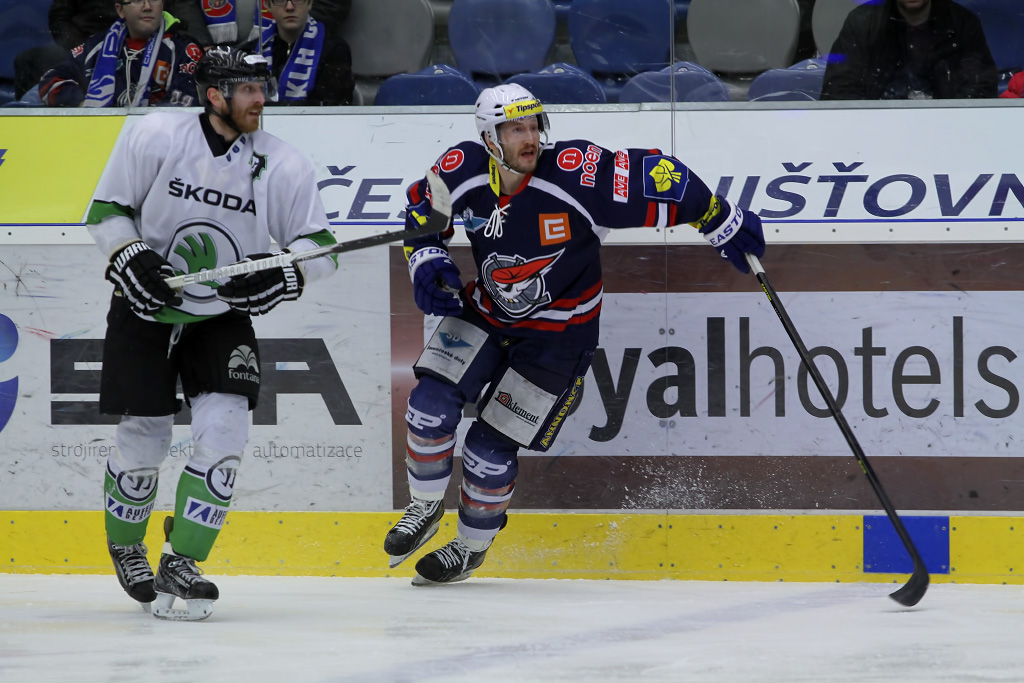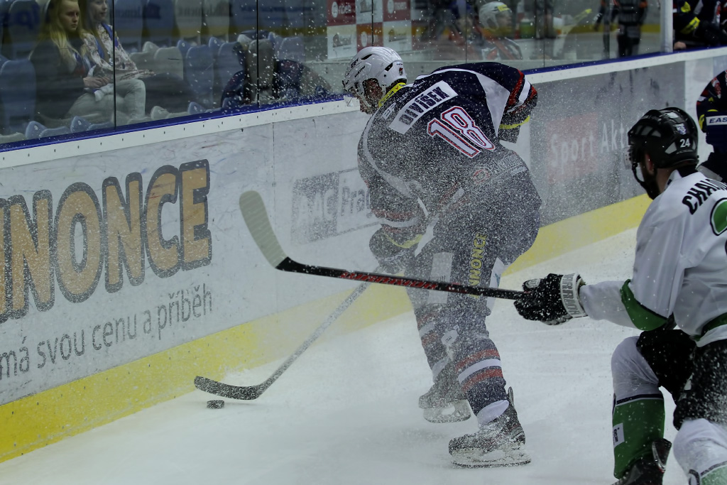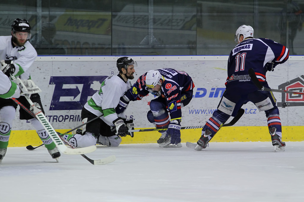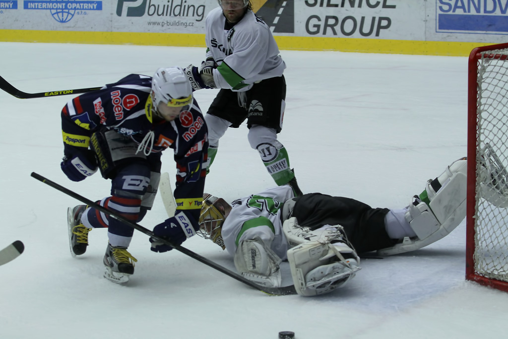 Marek Sikora vyrážel neúnavně na zteč, pomáhal mu mimo jiné i parťák z útoku Karel Hromas