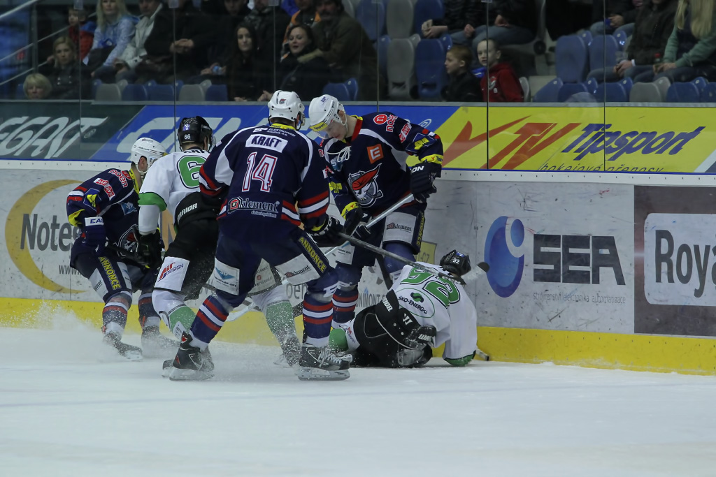 Tomáš Káňa bojuje o puk u mantinelu