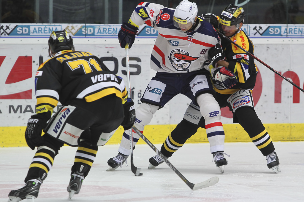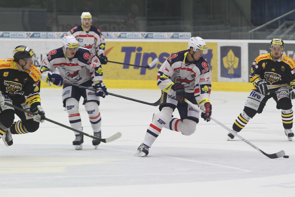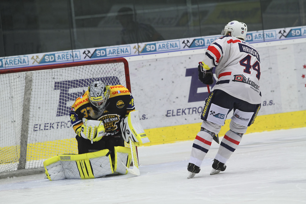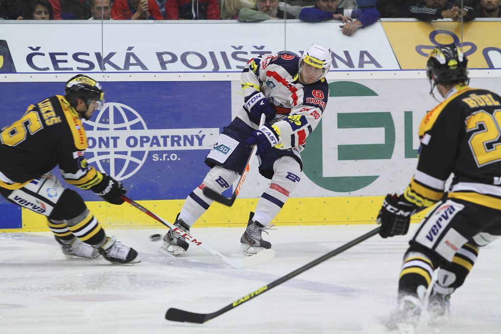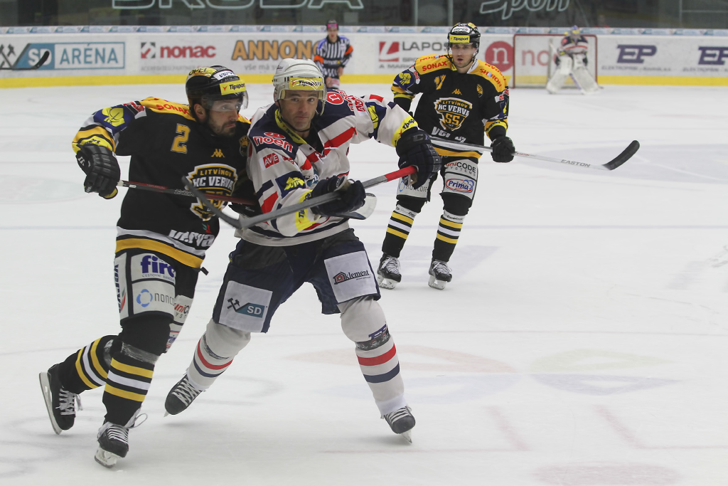 David Hruška po tomto souboji sice padá k ledu, ale jinak byl nejčastějším střelcem utkání. Na branku Vervy vyslal devět pokusů, jeden z nich prošel 17 vteřin před koncem normální hrací doby až do sítě