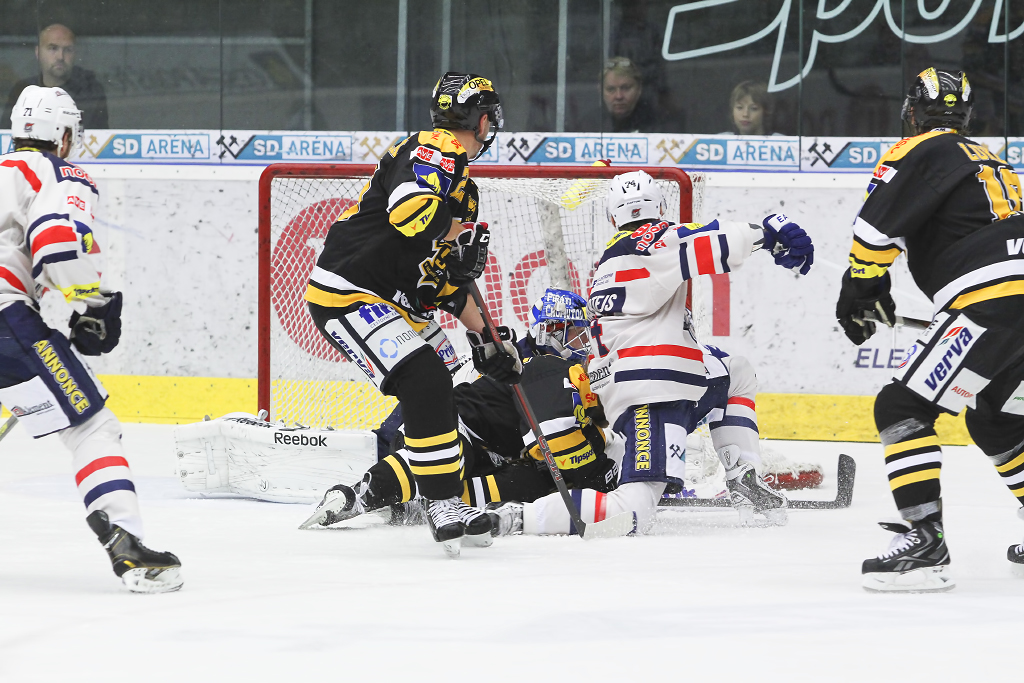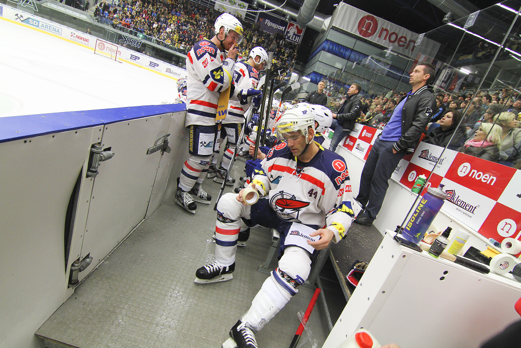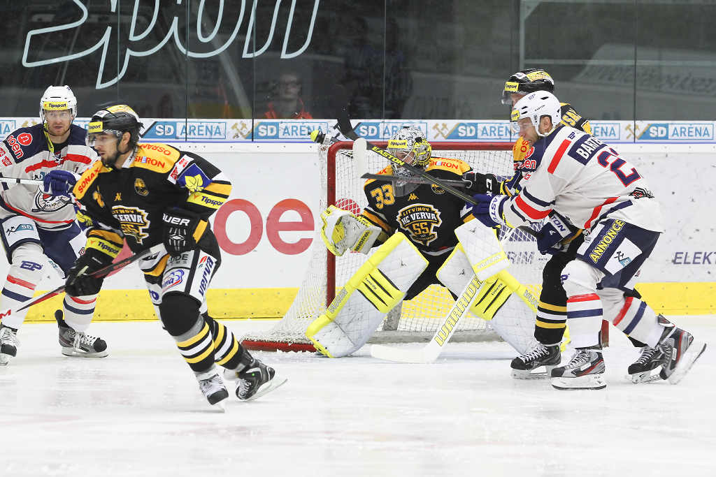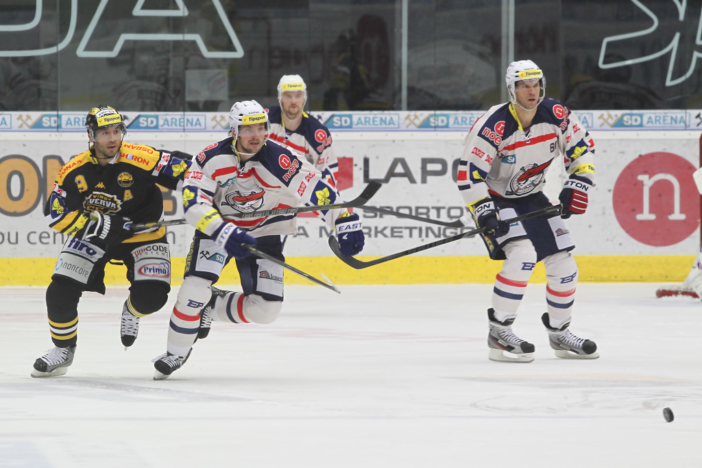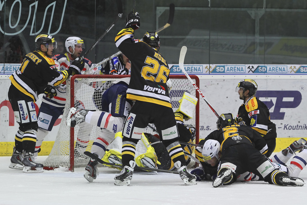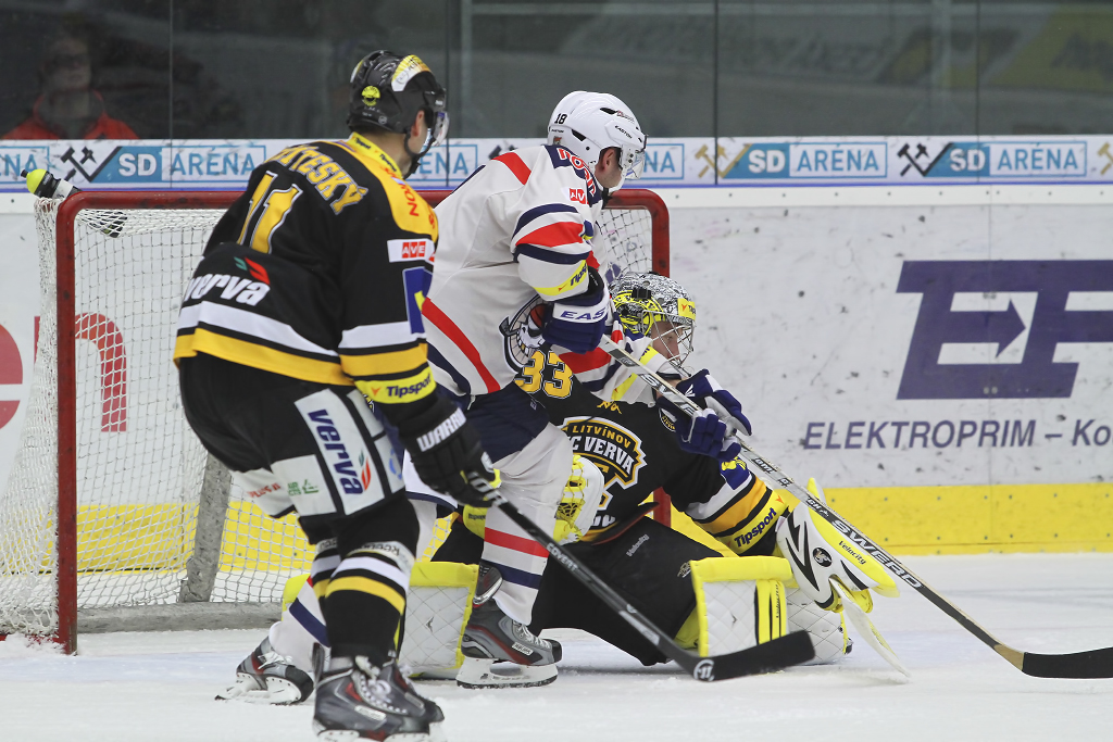 David Hruška po tomto souboji sice padá k ledu, ale jinak byl nejčastějším střelcem utkání. Na branku Vervy vyslal devět pokusů, jeden z nich prošel 17 vteřin před koncem normální hrací doby až do sítě