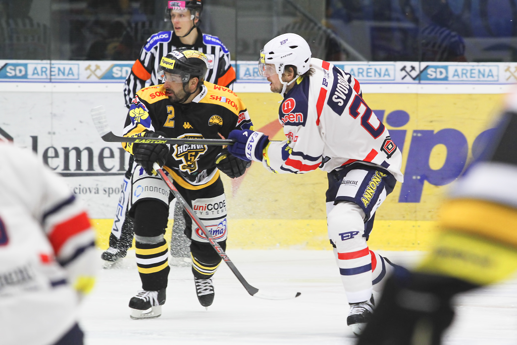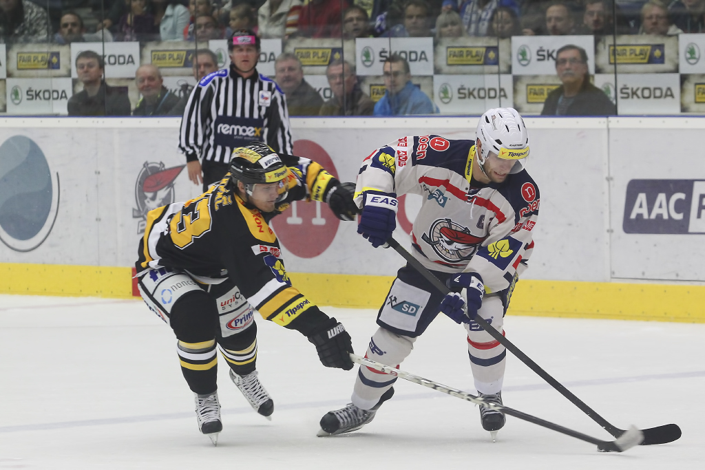 Souboj kapitánů obou celků - Piráti Ľuboš Bartečko a litvínovský Michal Trávníček
