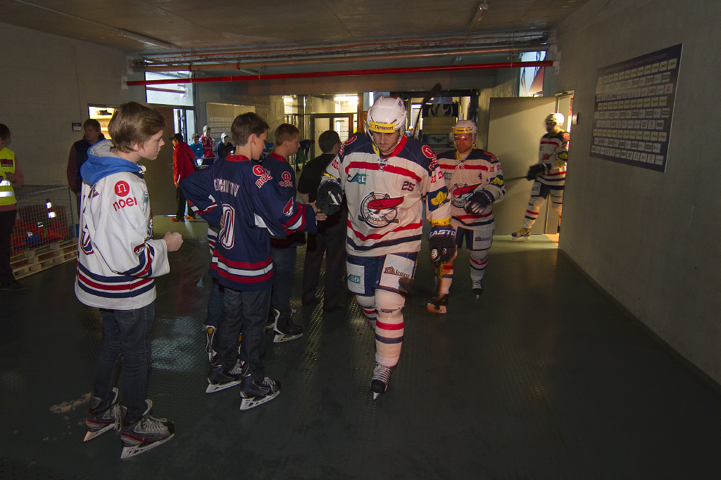 K zápasu nastupuje Lukáš Pulpán, za ním jde na led Jozef Balej
