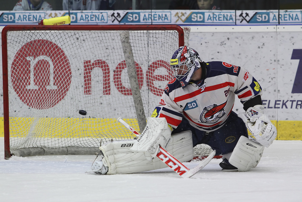 Milan Řehoř předvedl proti Pardubicím 21 úspěšných zákroků, pětkrát inkasoval