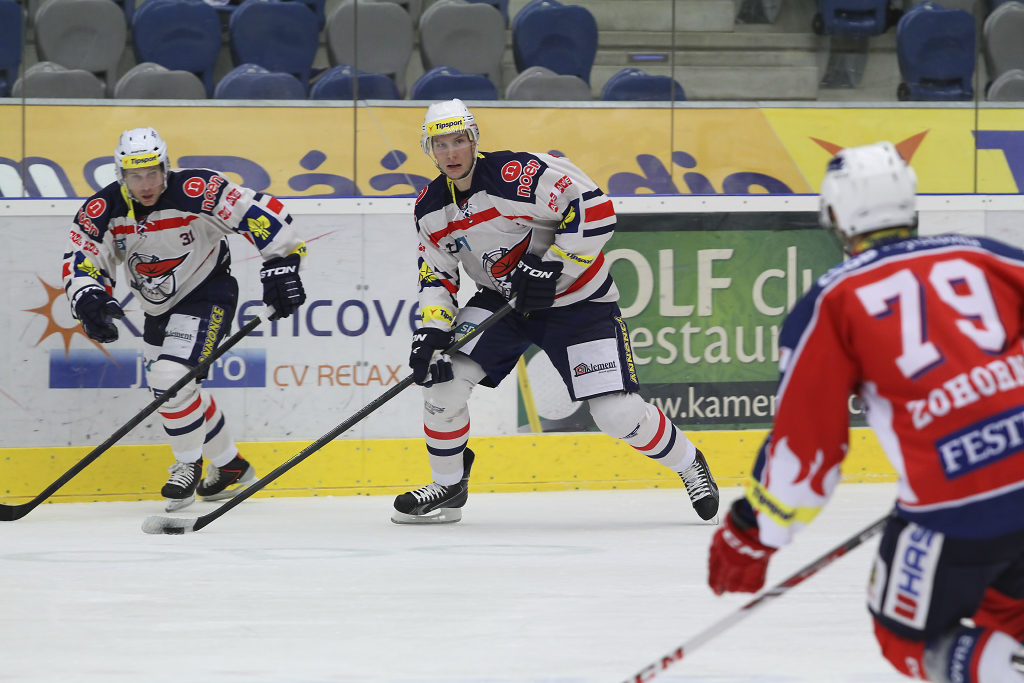 Štěpán Hřebejk vyslal na branku Pardubic tři projektily v zápase osmého kola přidal ještě jednu zblokovanou střelu