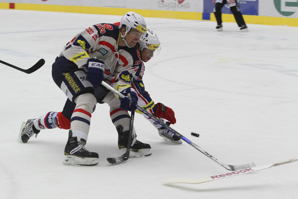 Mladíci David Kämpf a Ondřej Kaše dokáží udržet puk i v důrazných soubojích u mantinelu