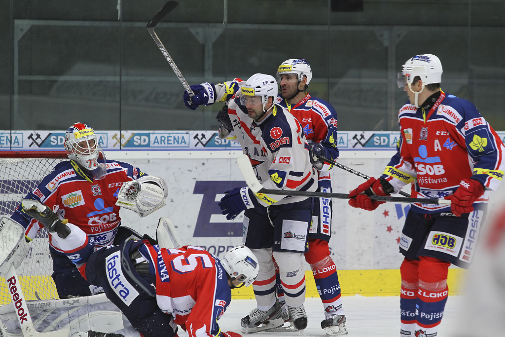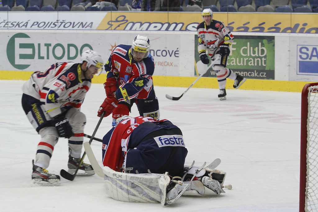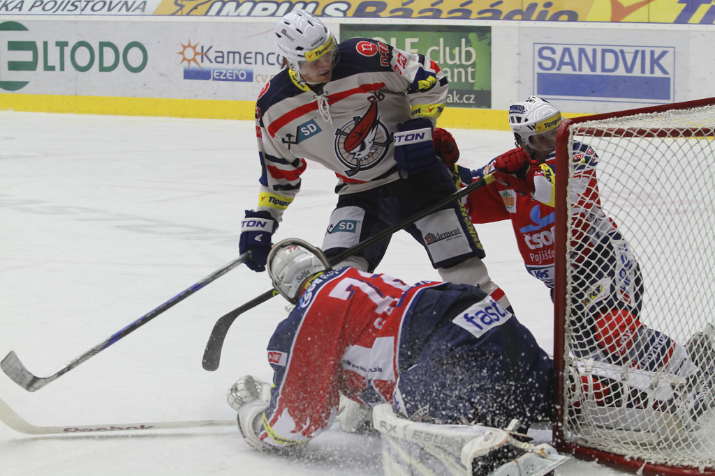 Tomáš Divíšek tentokrát clonící před pardubickou brankou...