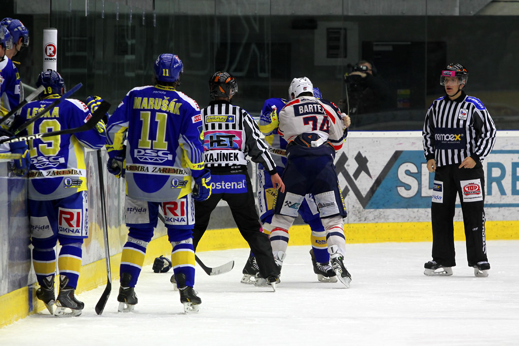 Krátce po polovině normální hrací doby došlo na pěstní výměnu názorů mezi Tomášem Bartejsem a Oldřichem Horákem