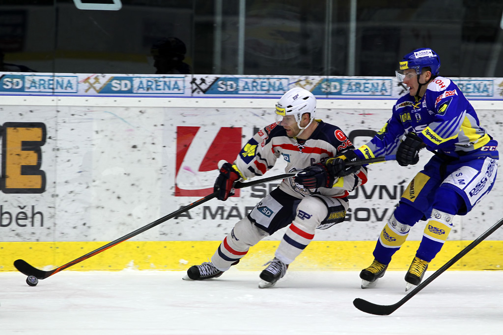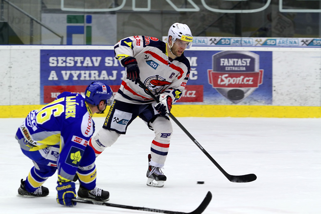 Souboj kapitánů - Petr Čajánek brání Ľuboše Bartečka