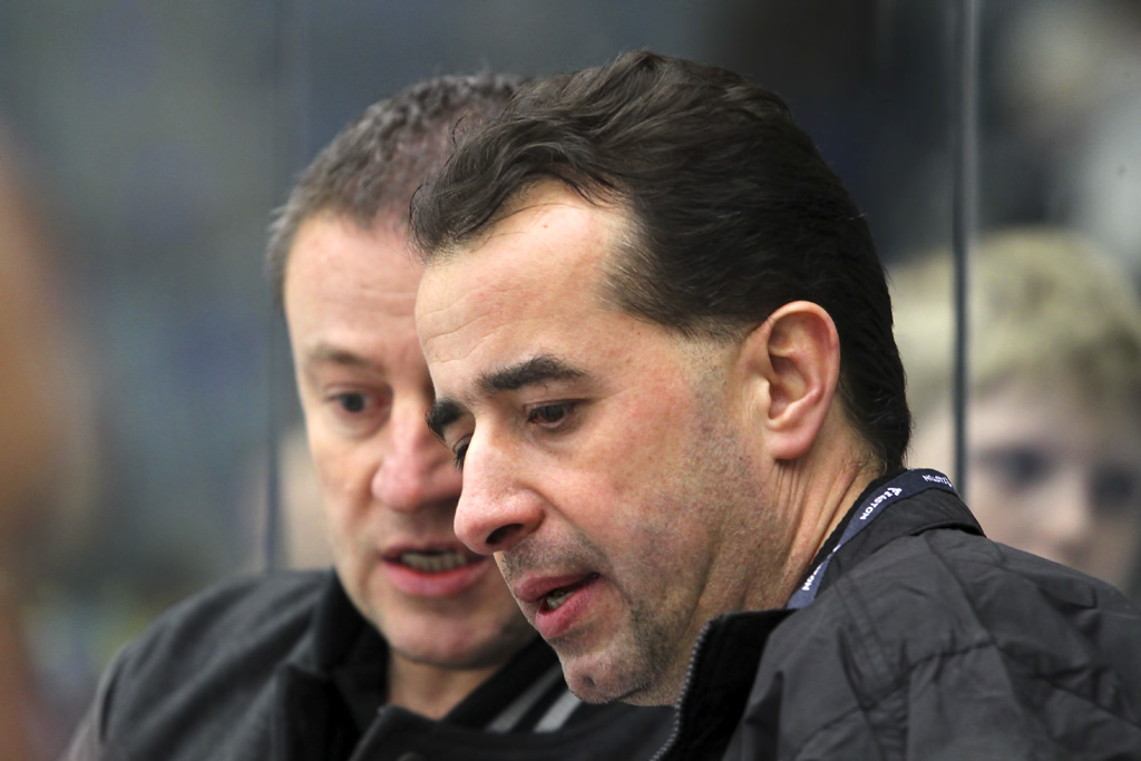 Hlavní trenér Josef Turek při konzultaci se svým asistentem Robertem Kašem