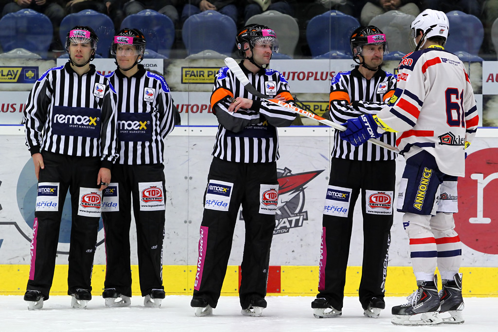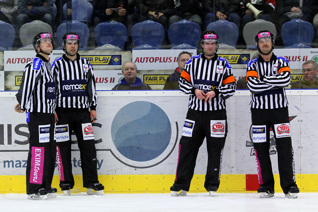 Utkání řídila dvojice rozhodčích Roman Polák - Alexander Pavlovič , na čarách jim pomáhali Aleš Hejl a Lukáš Kajínek