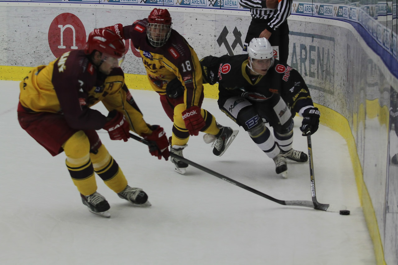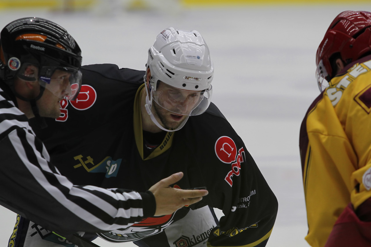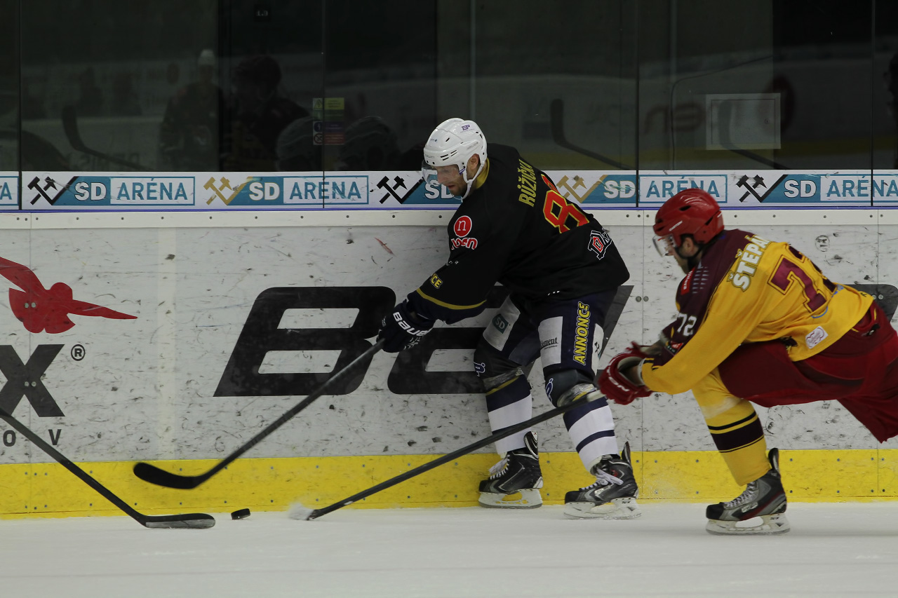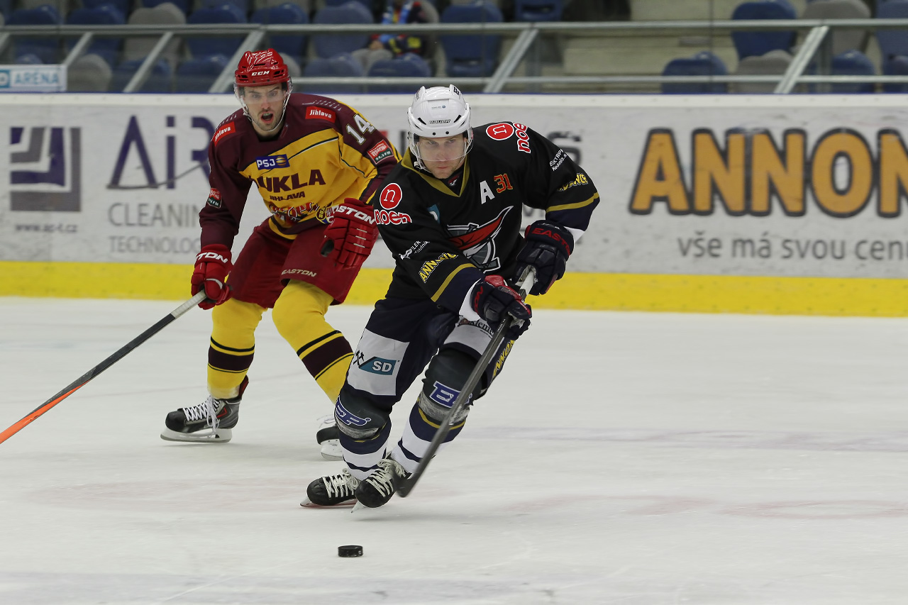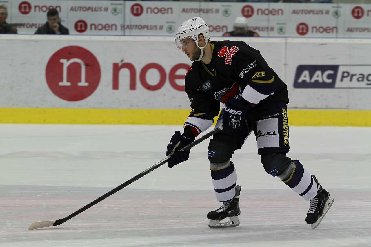 Martin Rýgl se ve druhé třetině dostal do úniku, ale k pořdnému zakončení se po ataku Zdeňka Čápa nedostal
