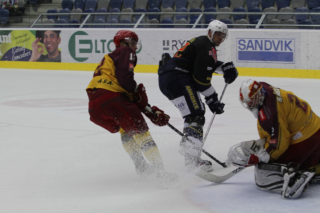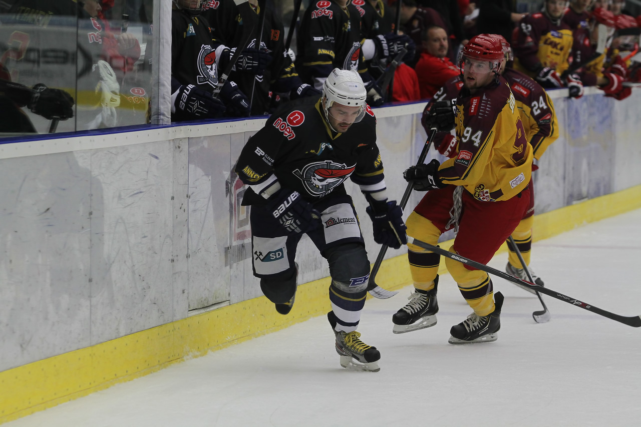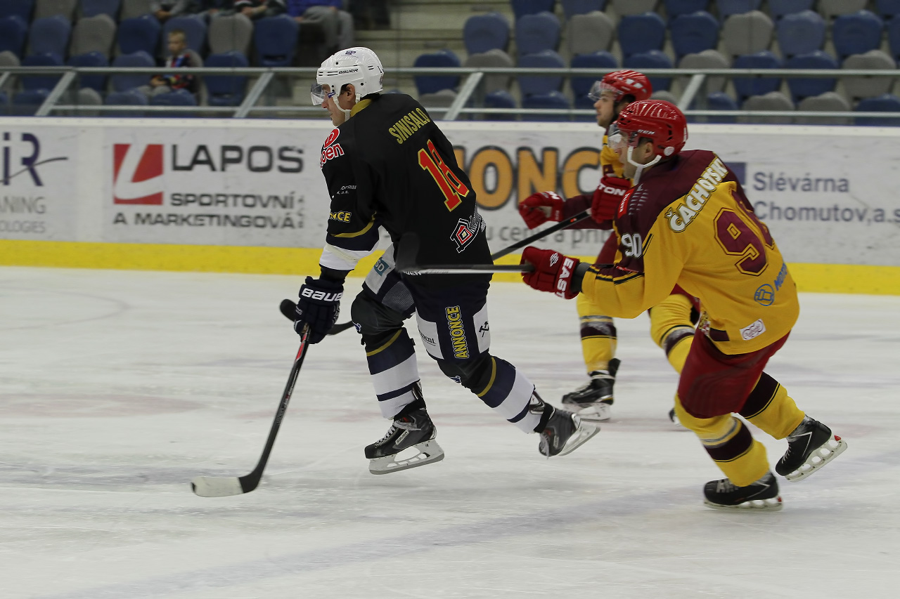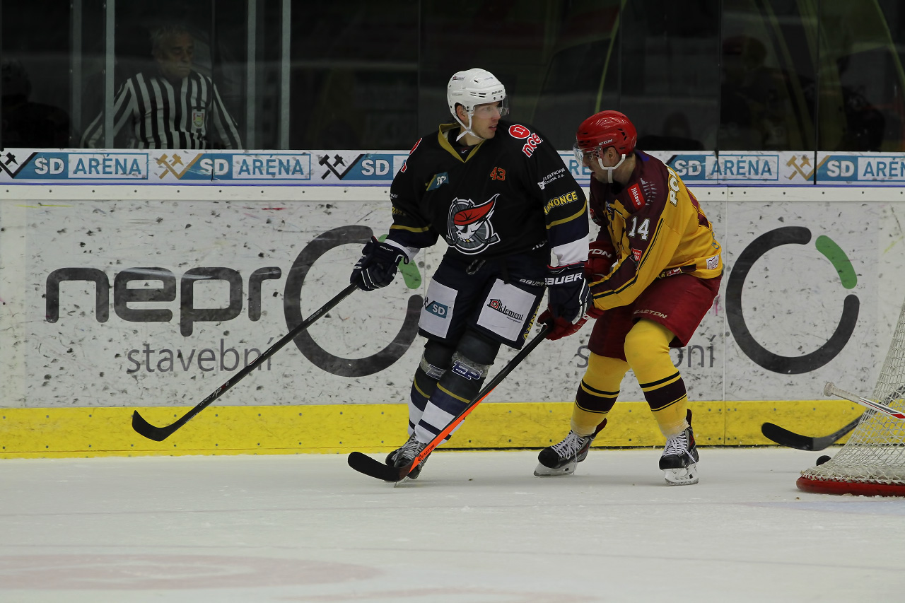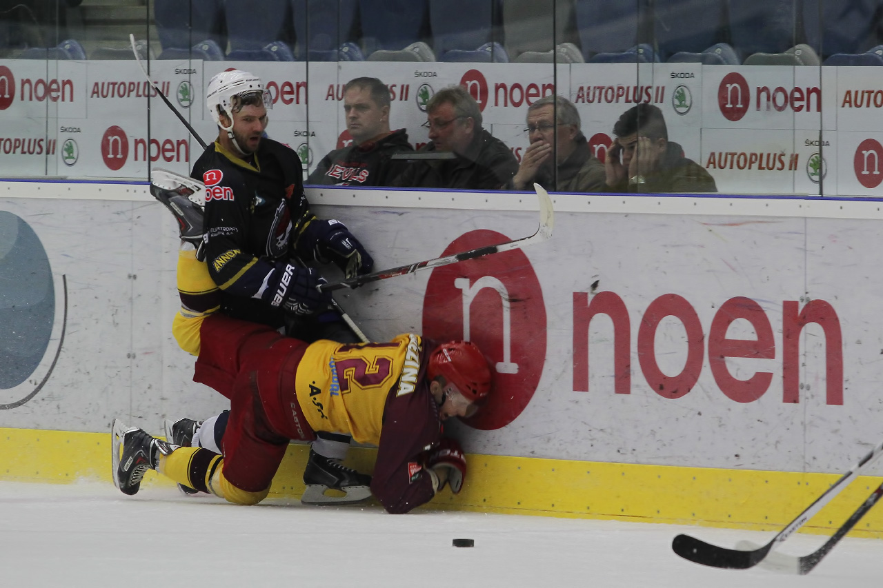Martin Rýgl se ve druhé třetině dostal do úniku, ale k pořdnému zakončení se po ataku Zdeňka Čápa nedostal