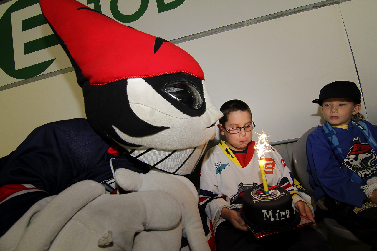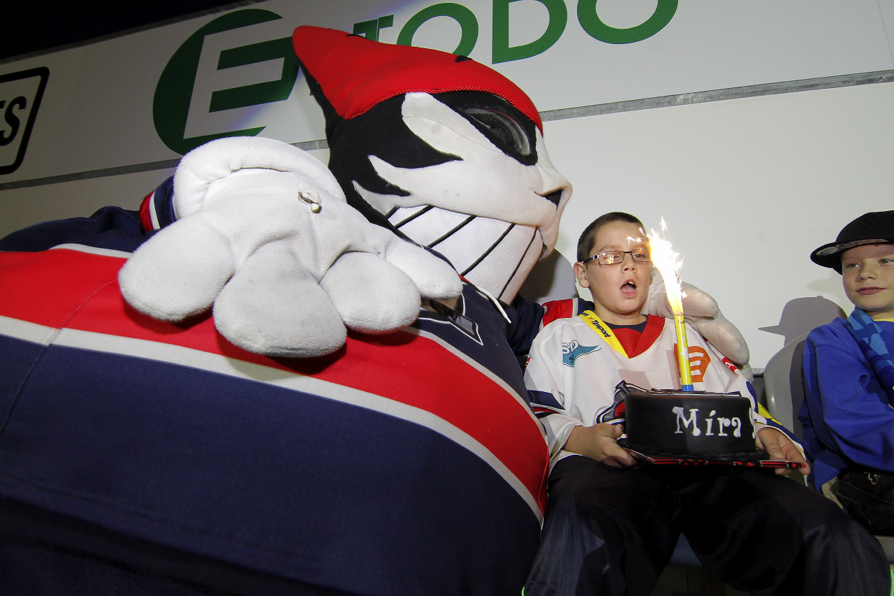 Míra oslavil v SD ARÉNĚ deváté narozeniny, tradiční gratulant Picaroon samozřejmě nemohl chybět