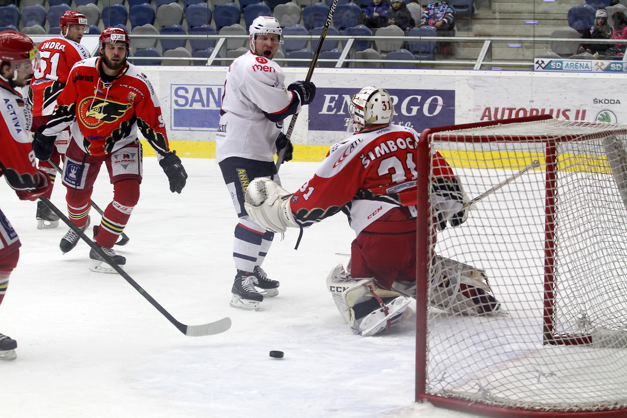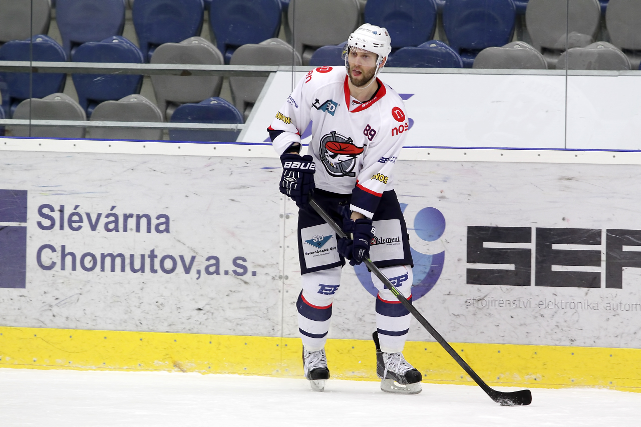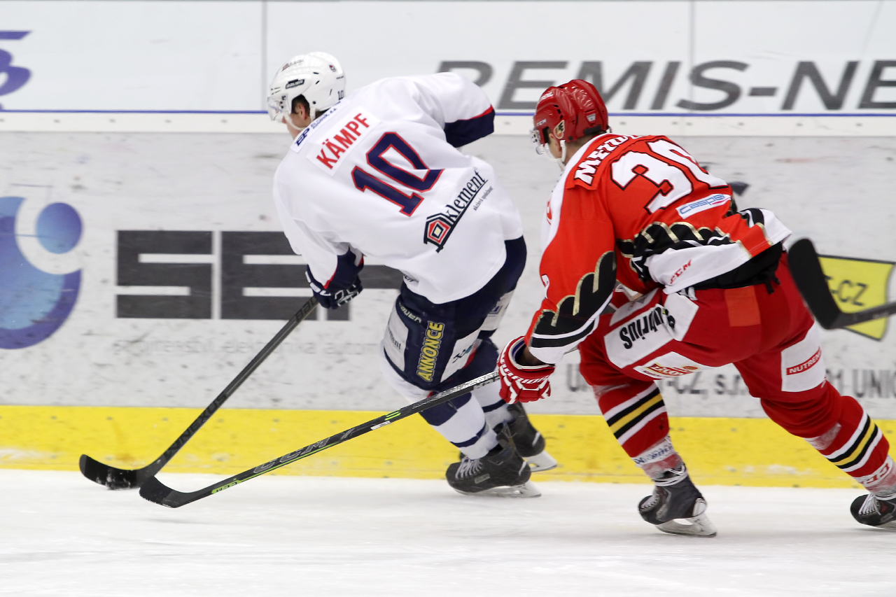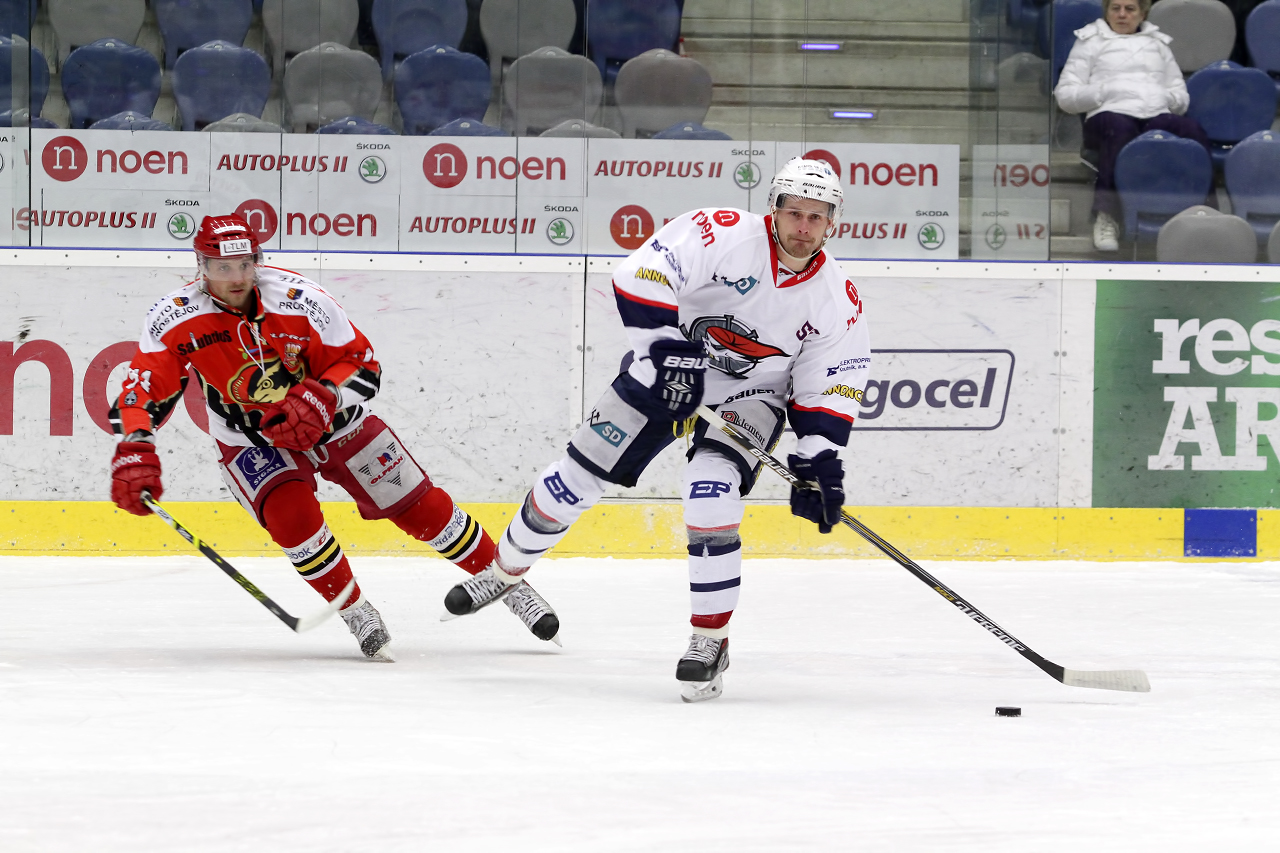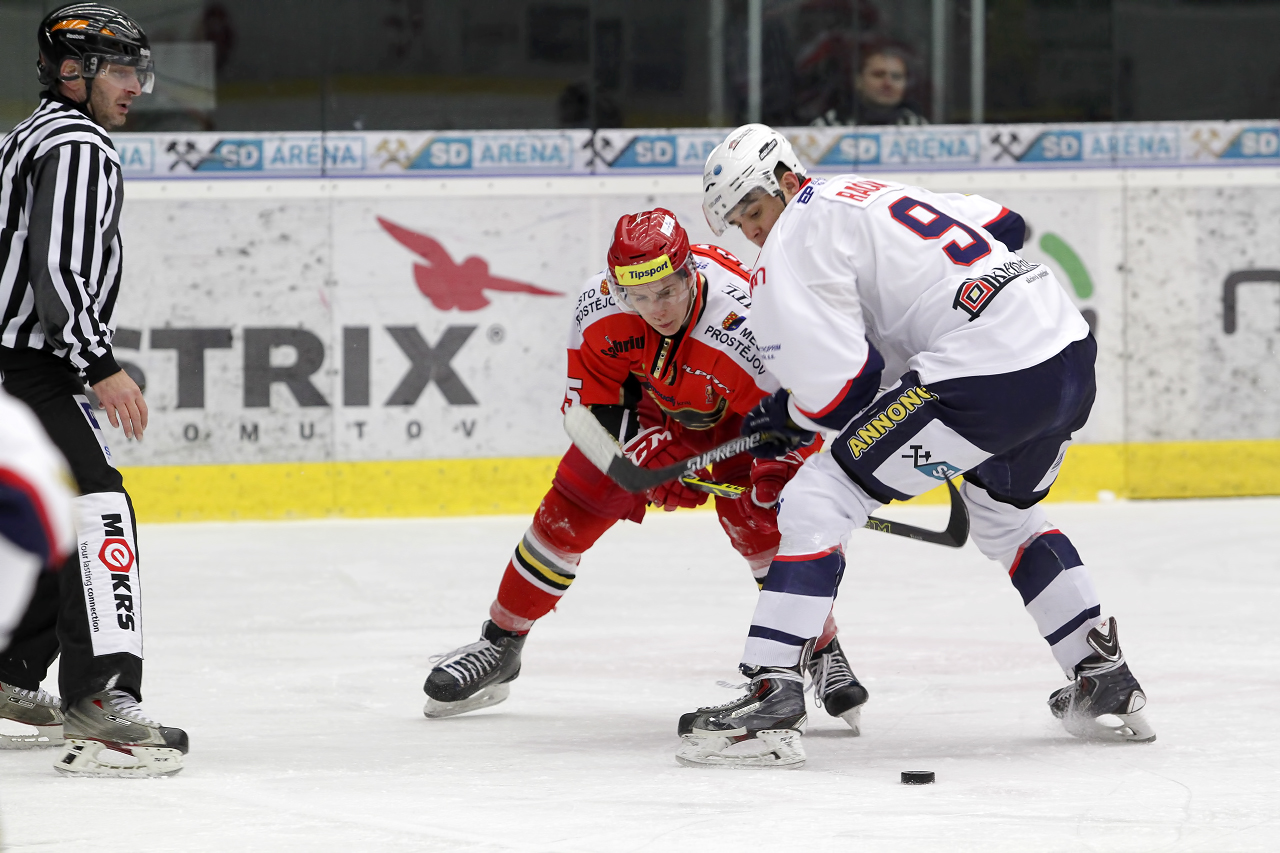 Další souboj Radima Matuše s chomutovským útočníkem, na buly proti němu tentokrát stojí Nikola Gajovský