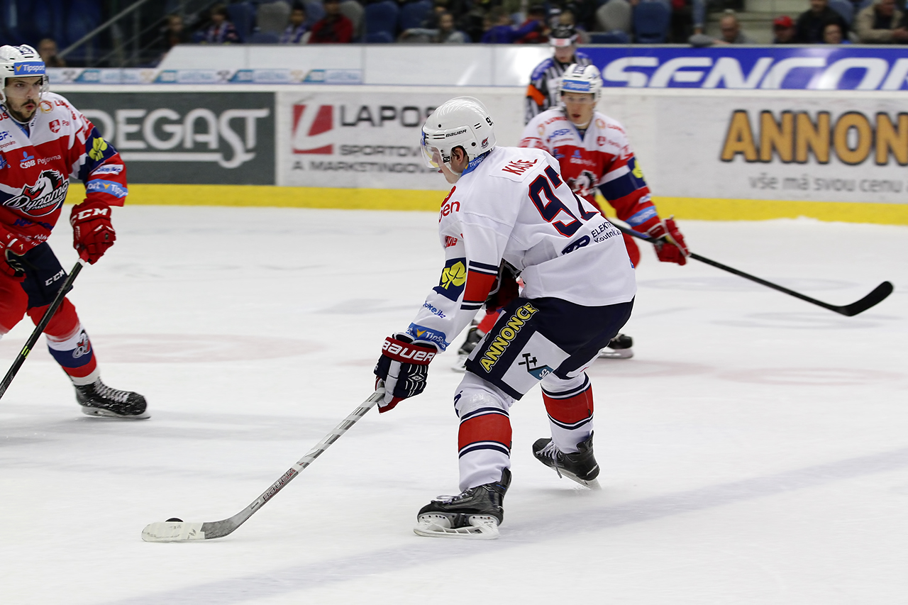 Přihrávající David Kaše strávil na ledě proti Pardubicím necelých devět minut