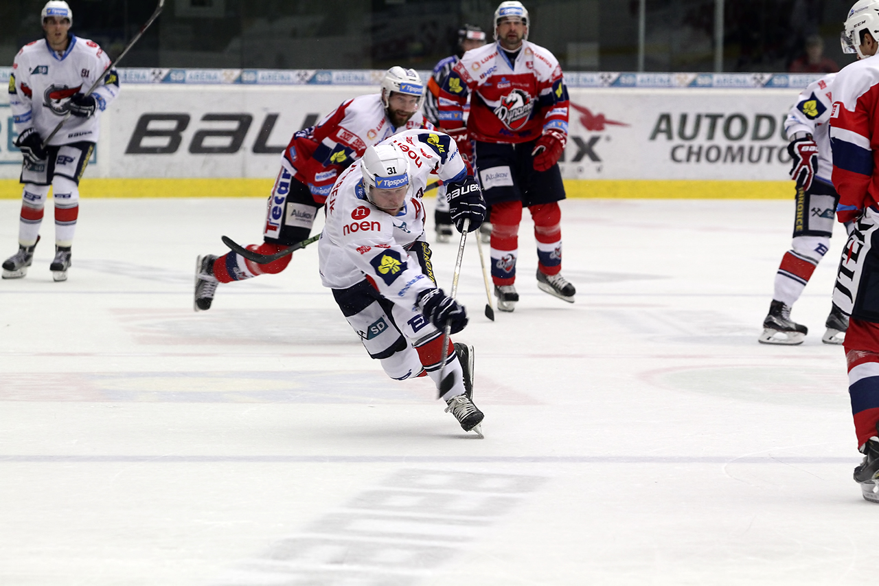 Roman Chlouba proti Pardubicím za devět a půl minuty na ledě jednou vystřelil a přidal jeden hit