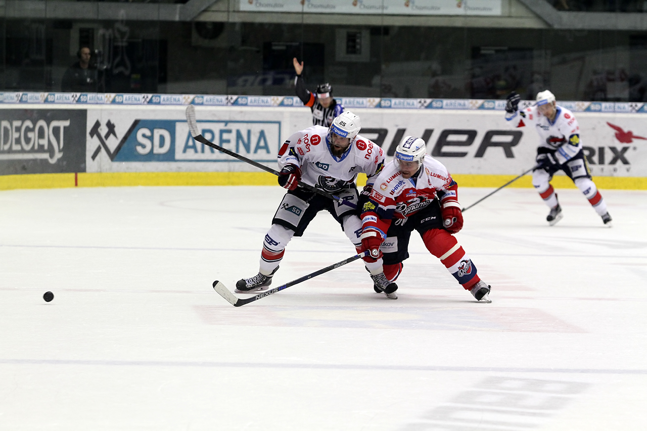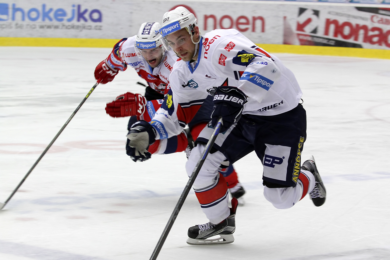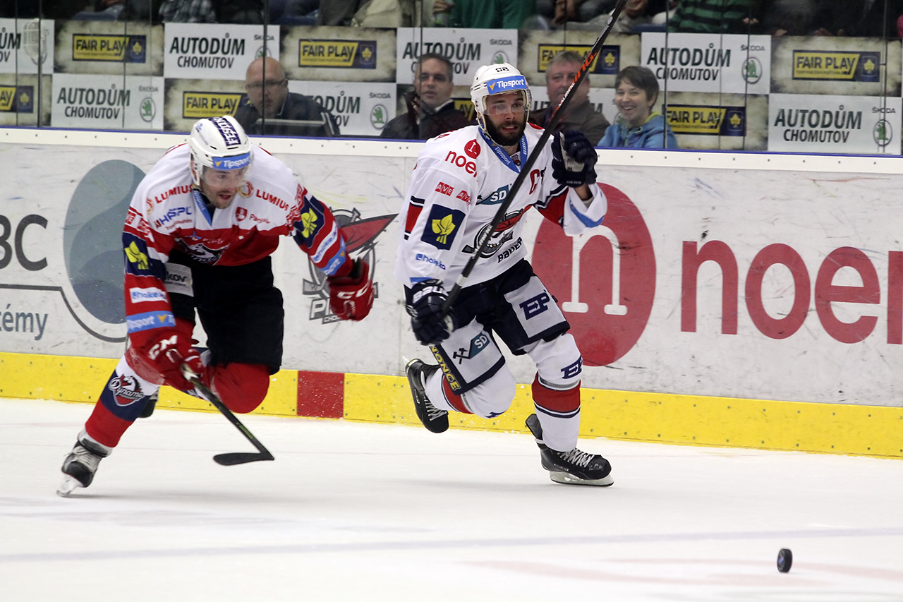 Jan Rutta postupuje kupředu pronásledovaný pardubickým soupeřem