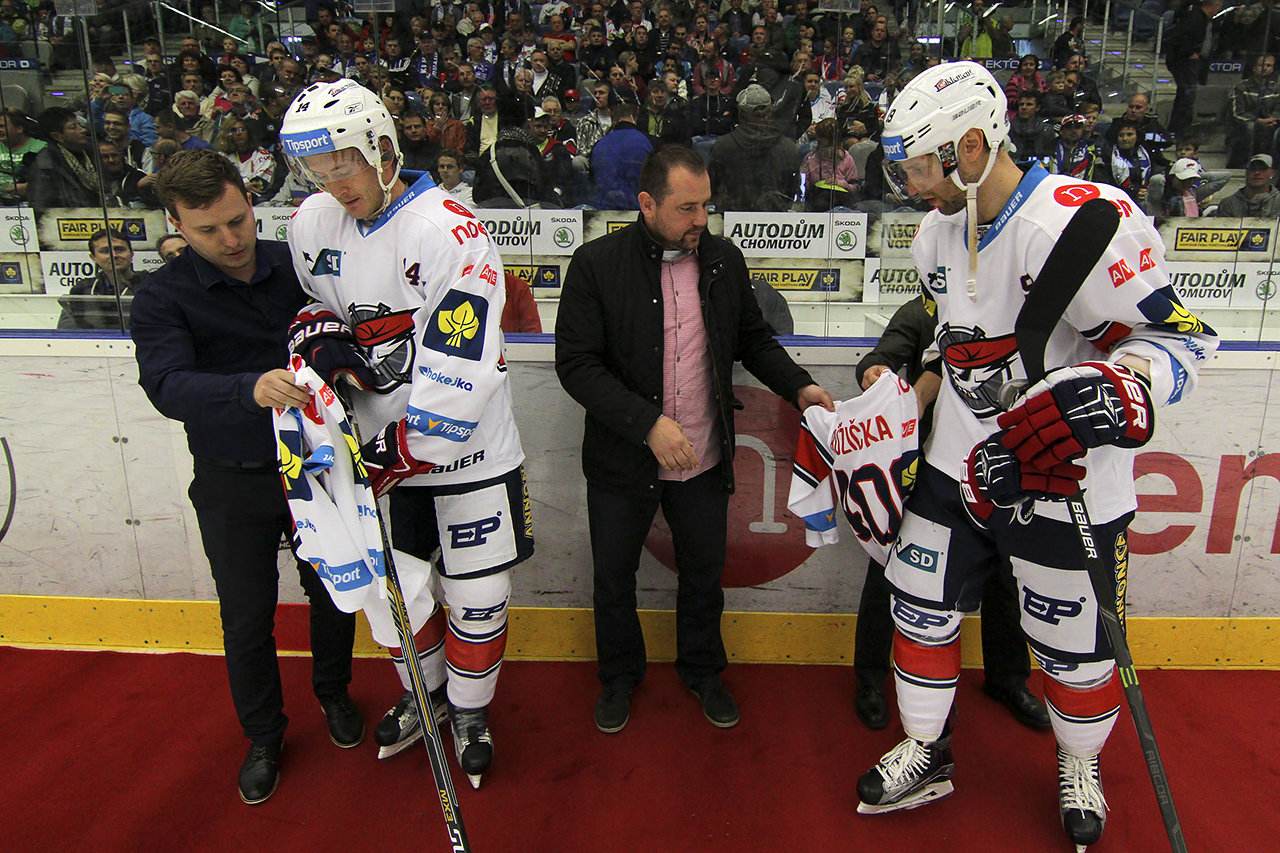 Vyhlášení nejlepších hráčů utkání, jimiž se stali Roman Červenka a Libor Kašík