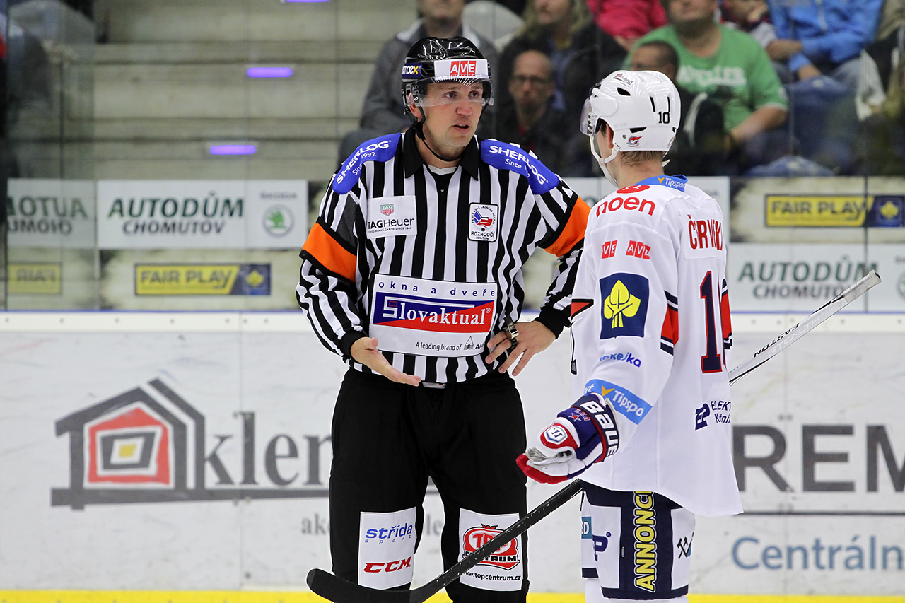 „Já už nevím, co bych ti k tomu řekl,“ jako by napovídalo gesto hlavního rozhodčího Vladimíra Šindlera směrem k Romanu Červenkovi