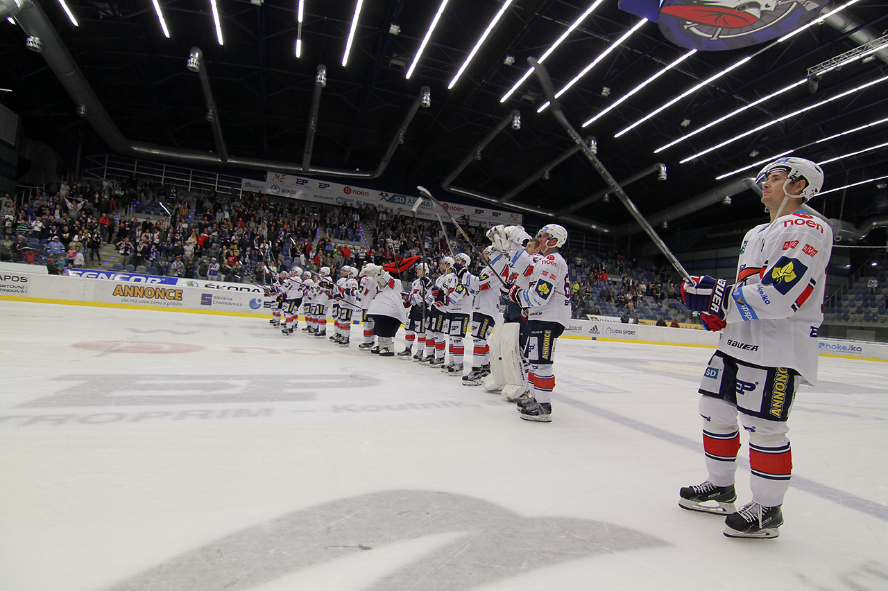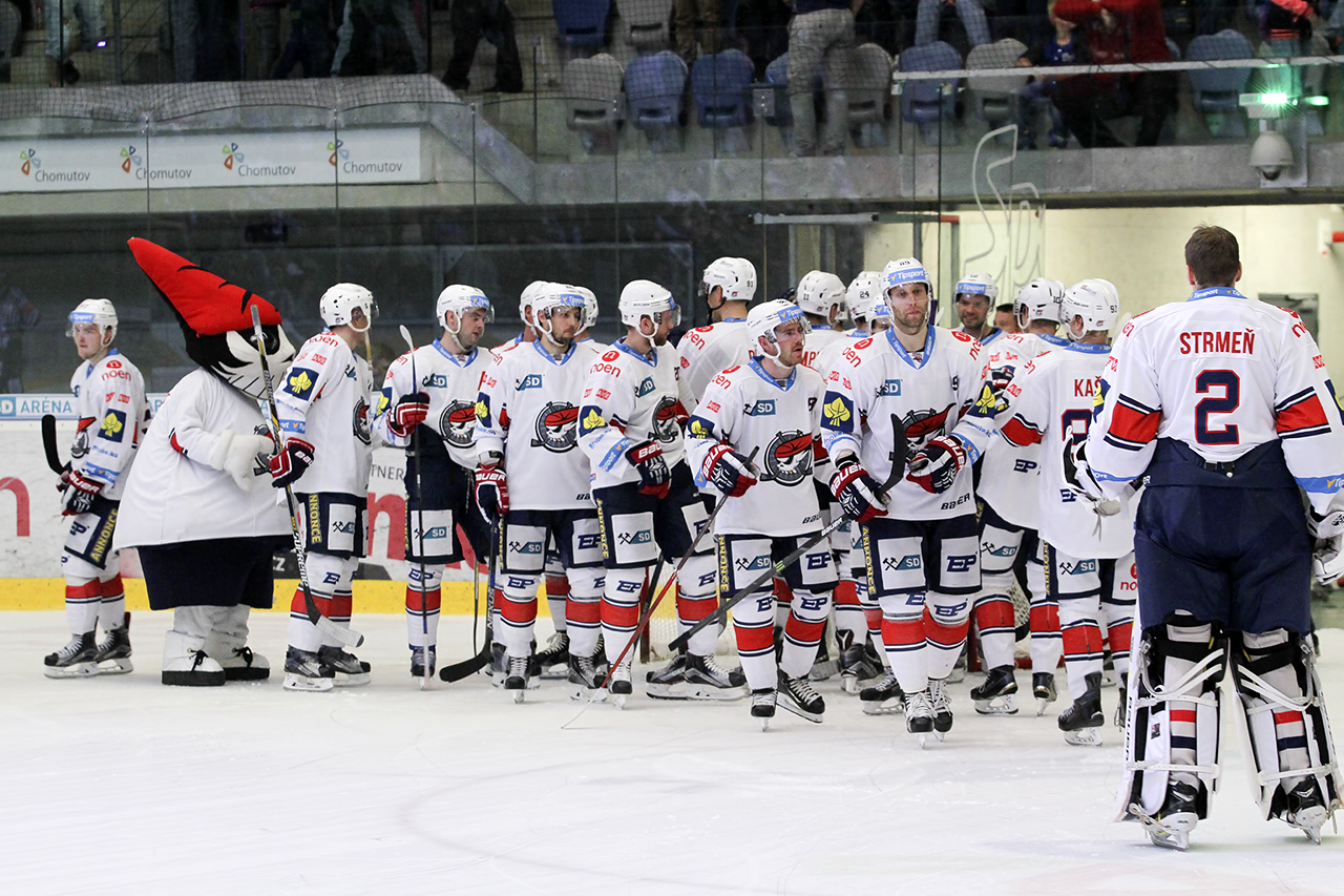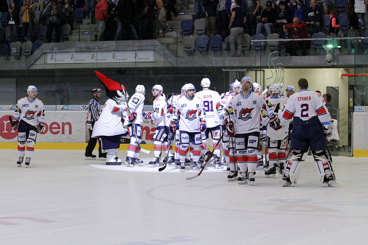 Miroslav Kopřiva se raduje ze čtvrté výhry Pirátů v řadě, což je novodobý chomutovský rekord v nejvyšší soutěži