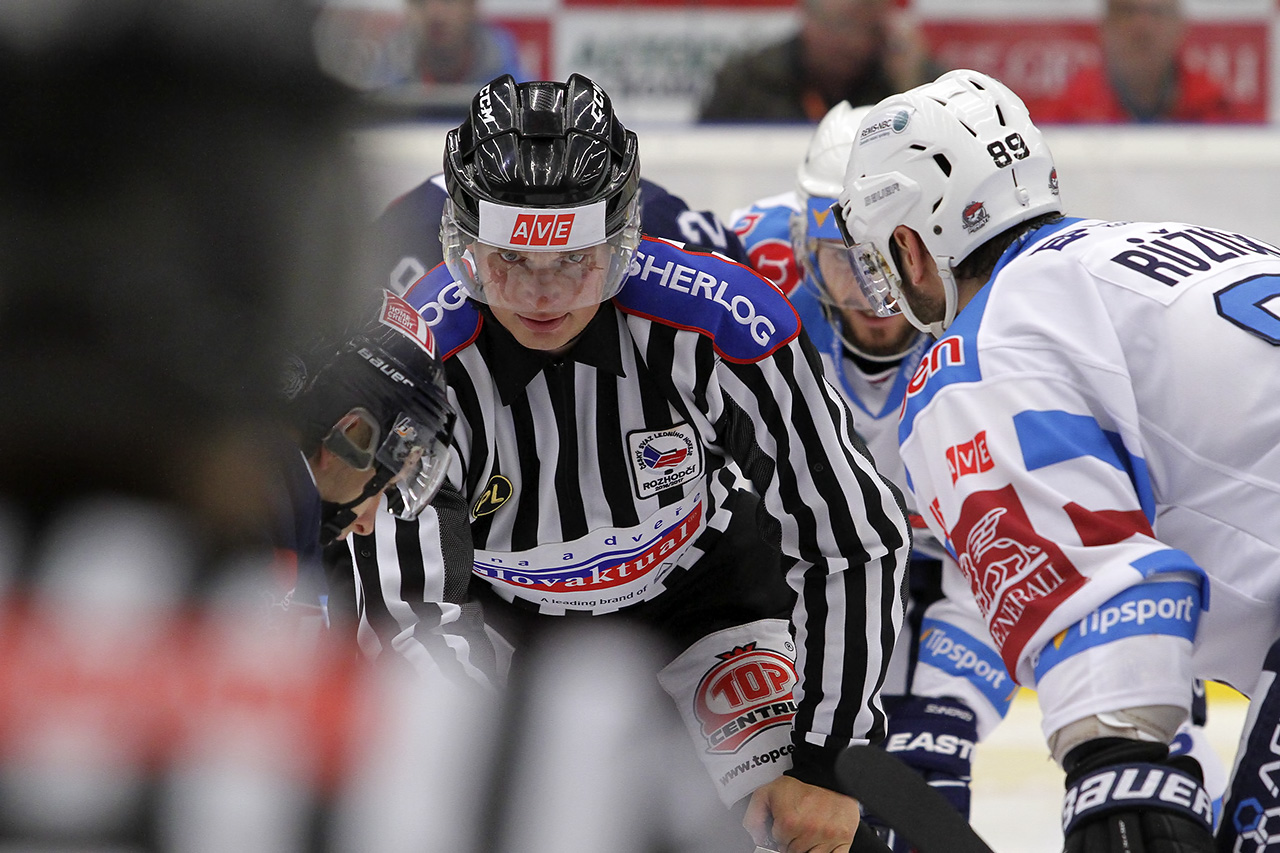 Kapitáni Michal Vondrka a Branko Radivojevič u rozhodčích před startem nájezdů