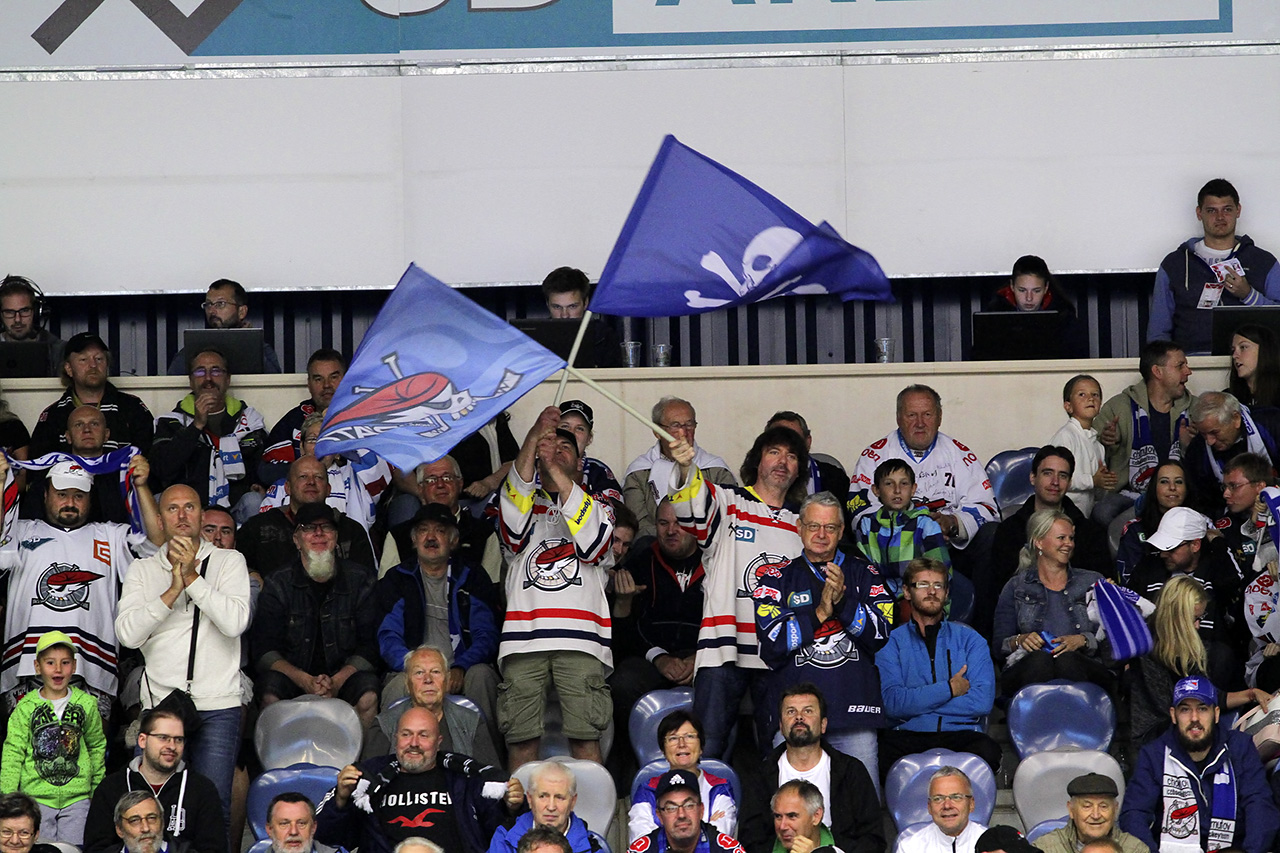 Úspěšný zákrok slovenského gólmana ve službách Pirátů slavili i diváci v sektoru C