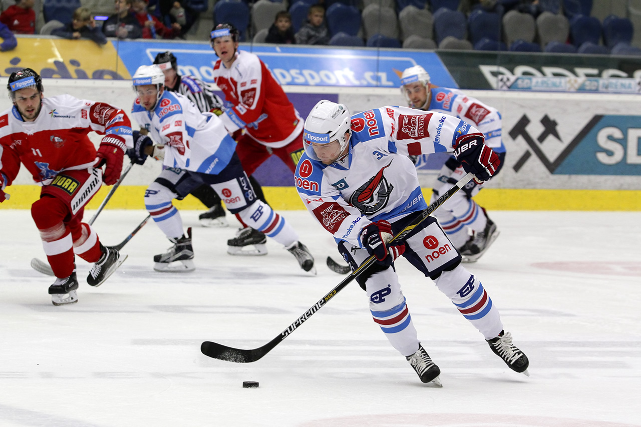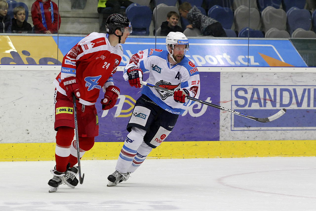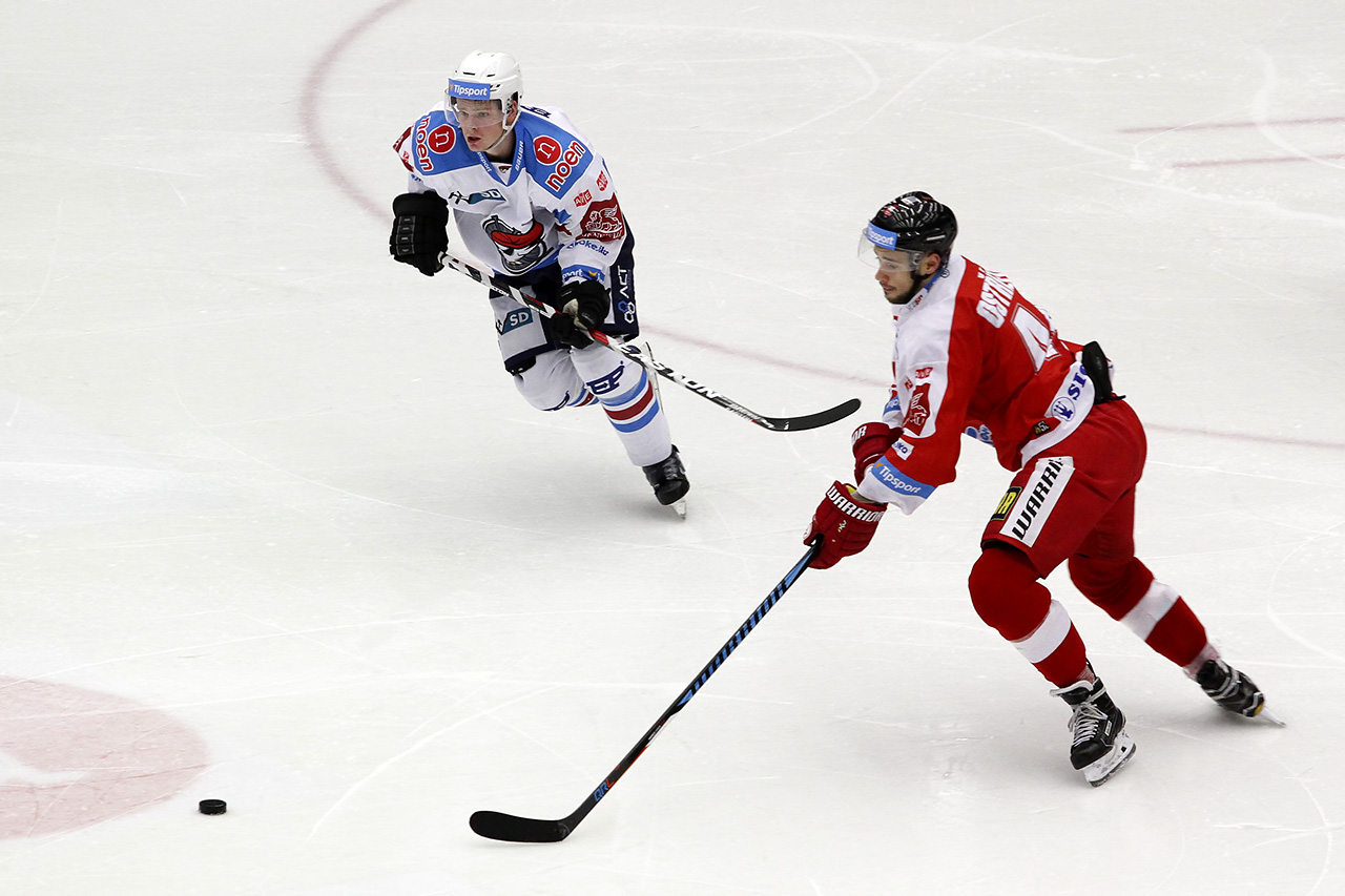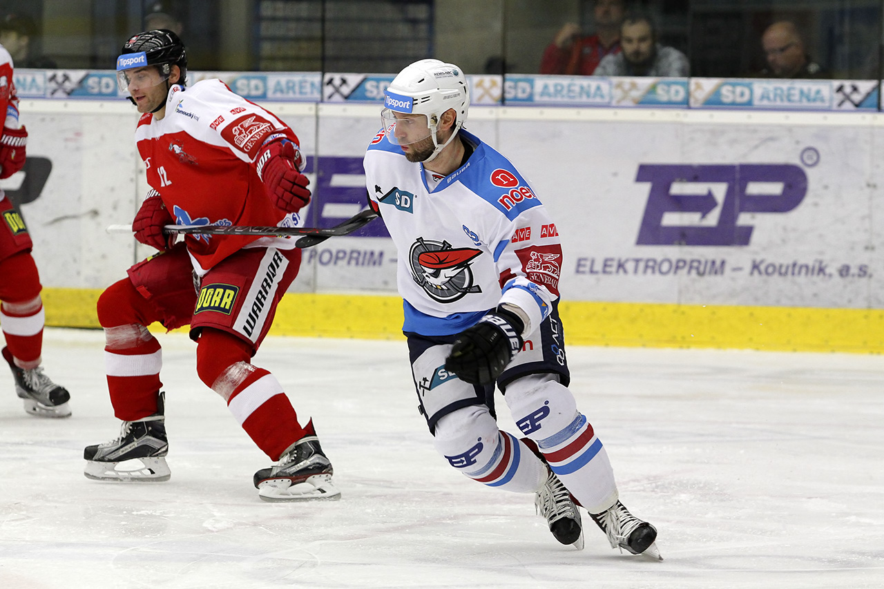 David Kaše se snaží být u puku dříve než David Ostřížek