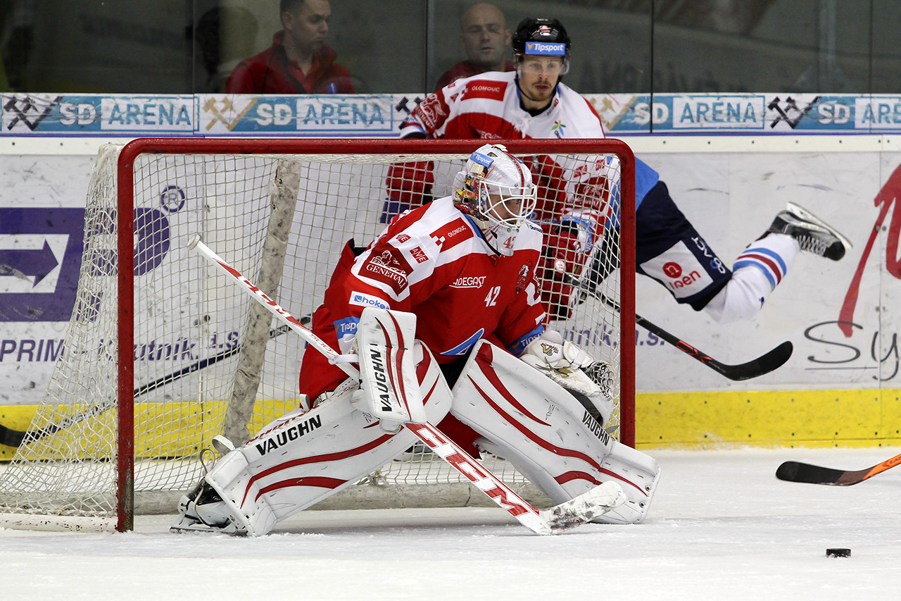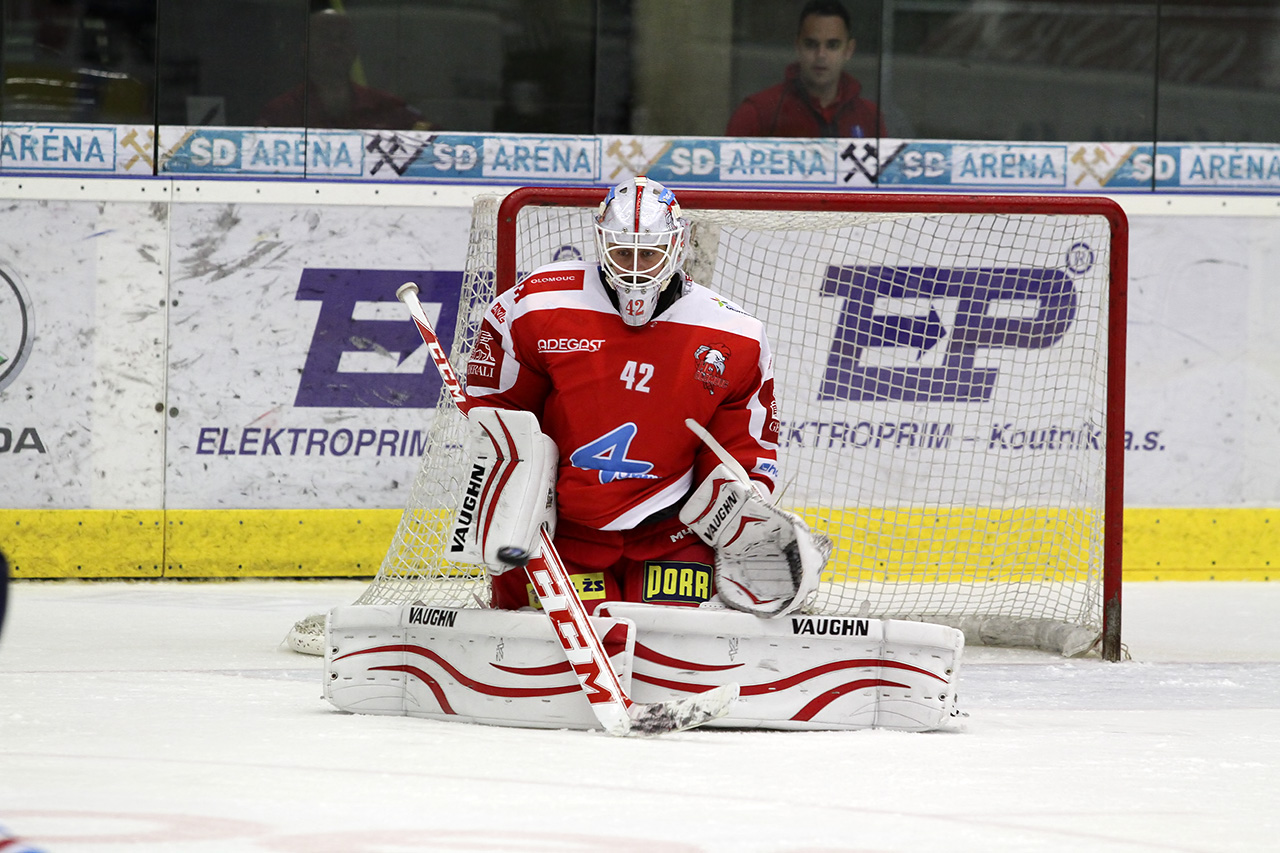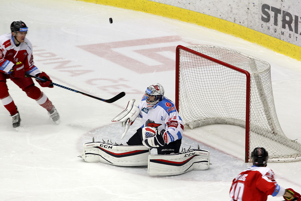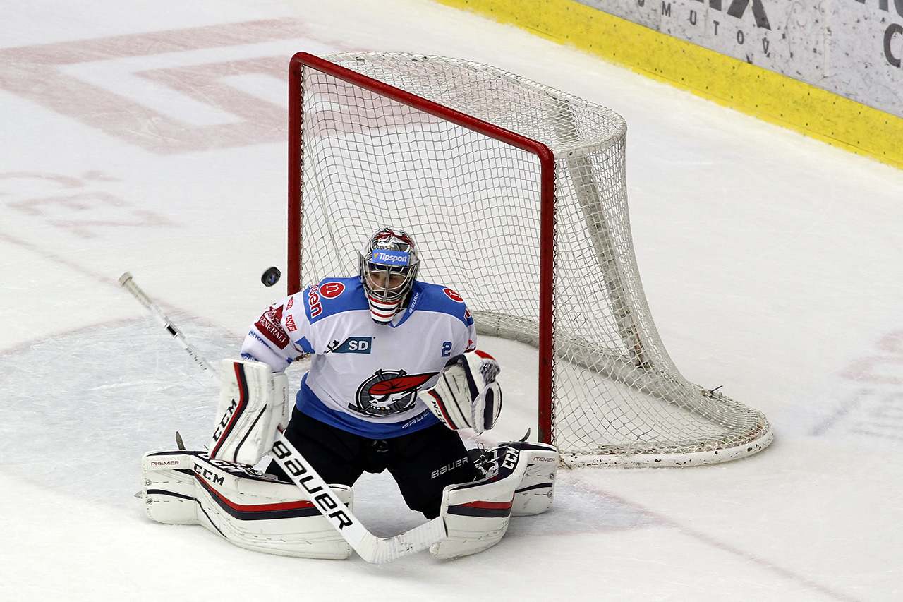 Jan Strmeň předvedl proti Olomouci za necelých 55 minut na ledě 14 úspěšných zákroků