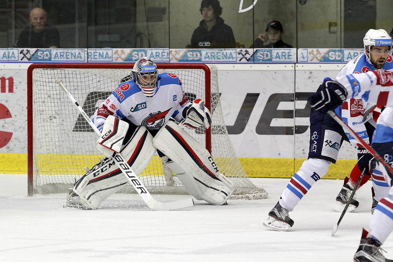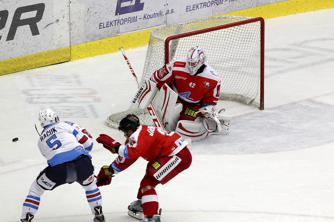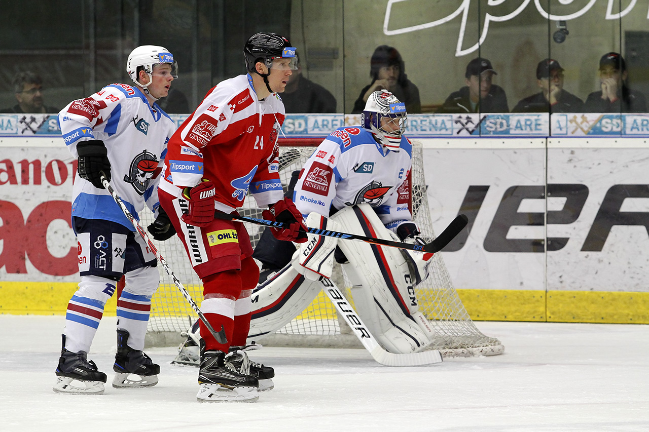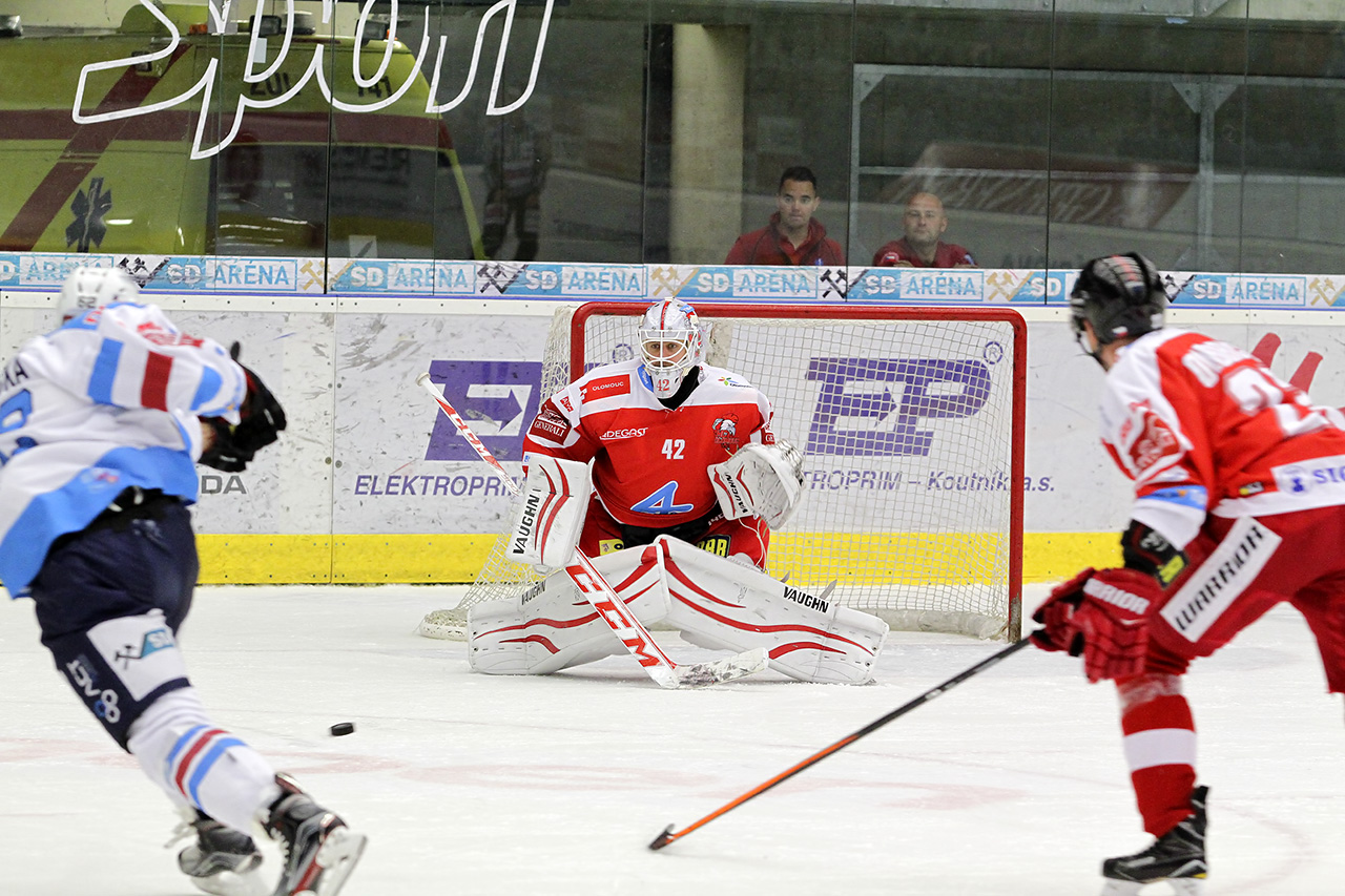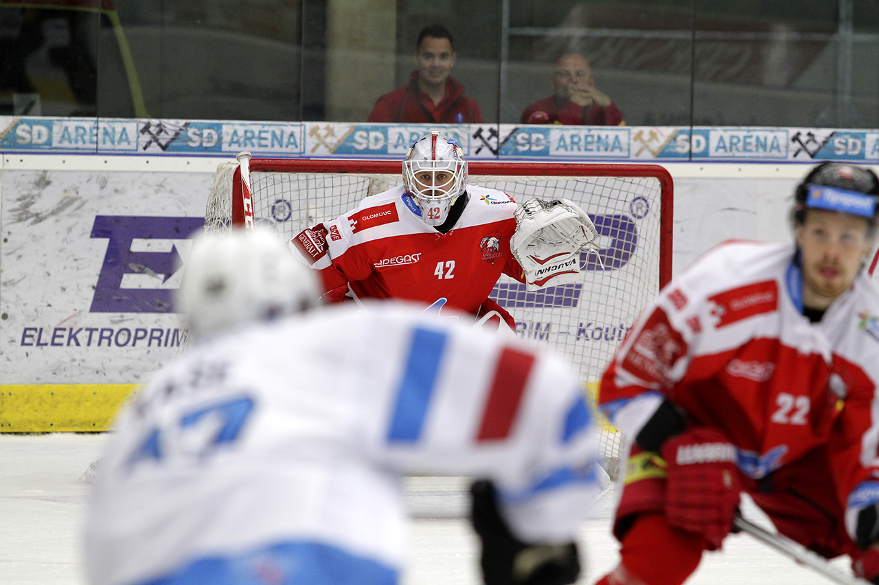 Jan Strmeň předvedl proti Olomouci za necelých 55 minut na ledě 14 úspěšných zákroků