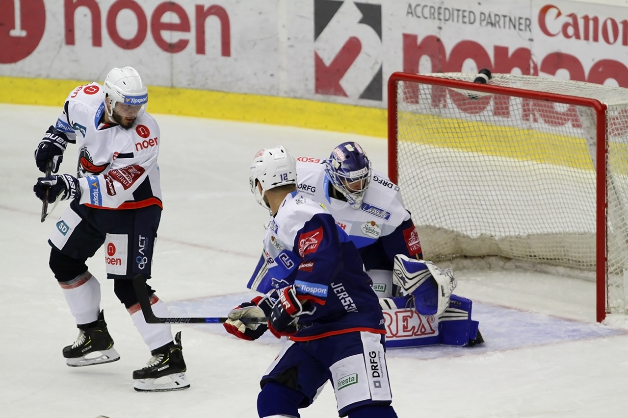 Kotouč už se po odrazu od Langhamera kutálí do brankoviště