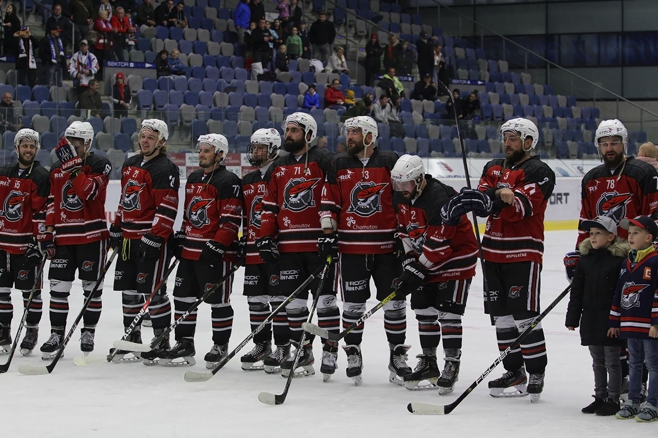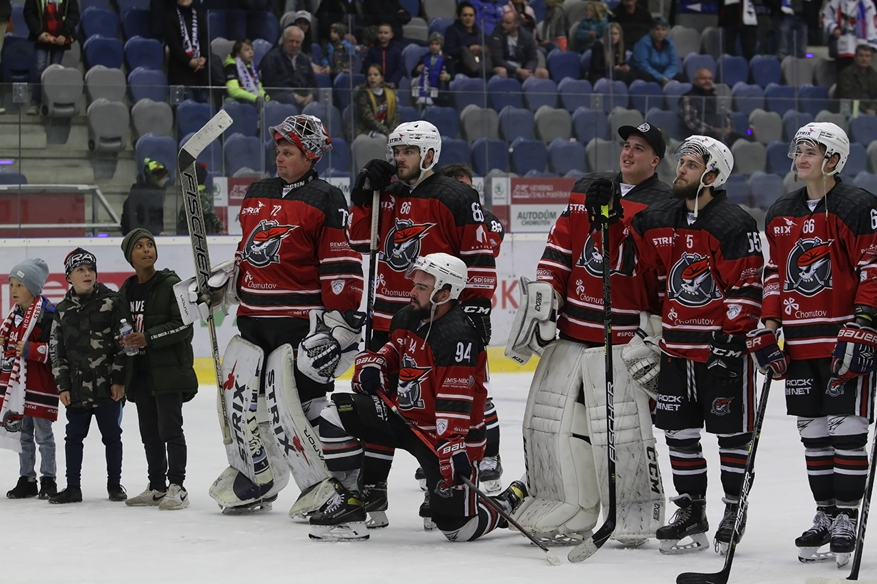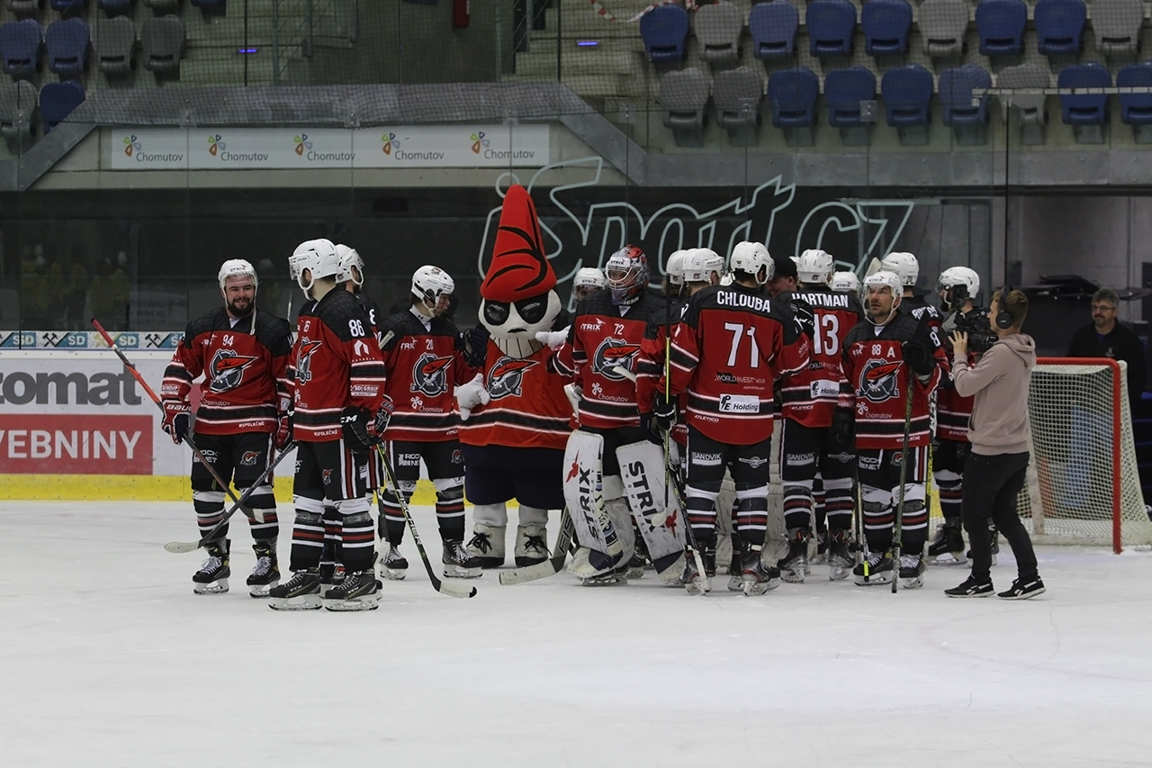 Na pozápasové oslavě vítězství s Kadaní nechyběl ani maskot Picaroon