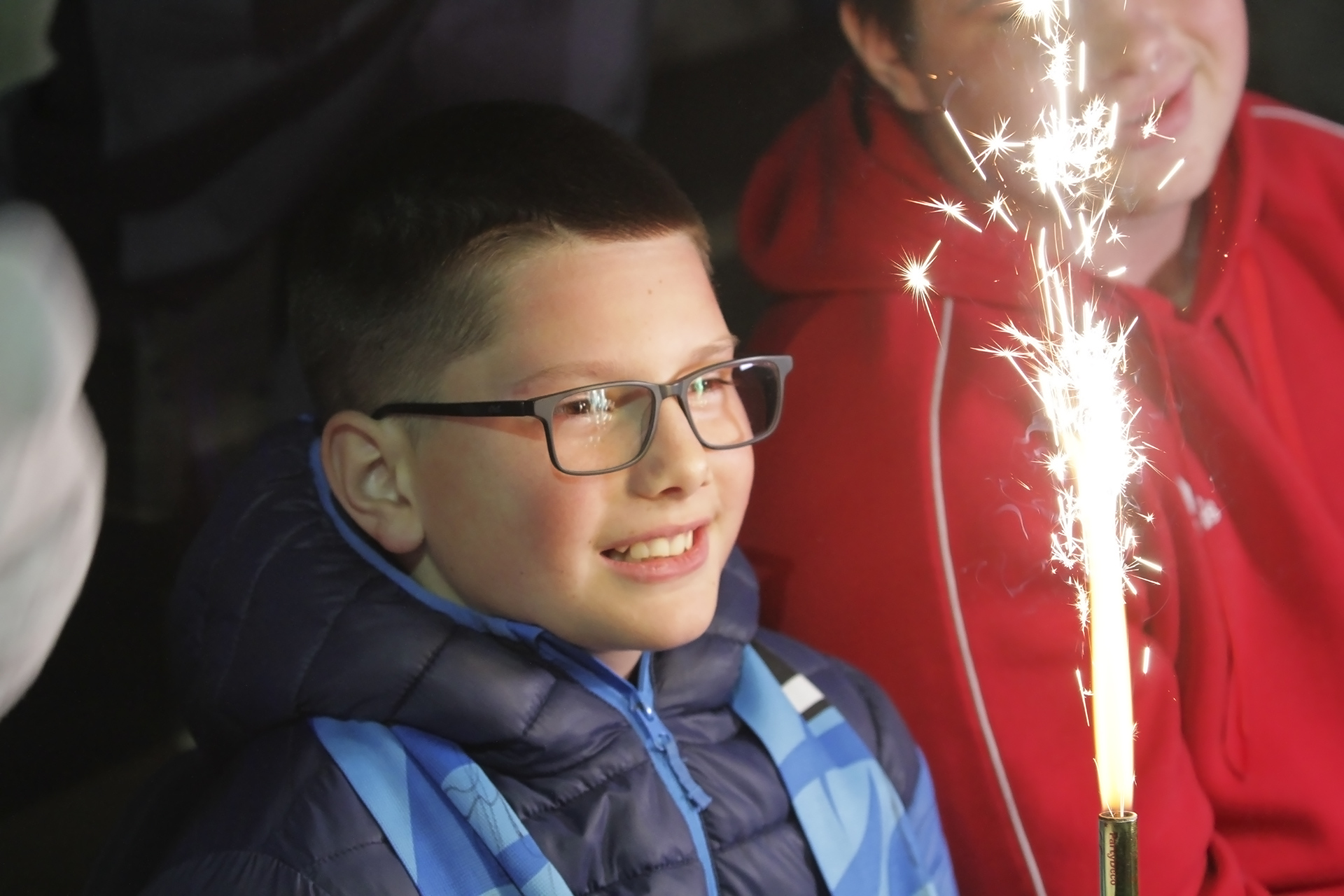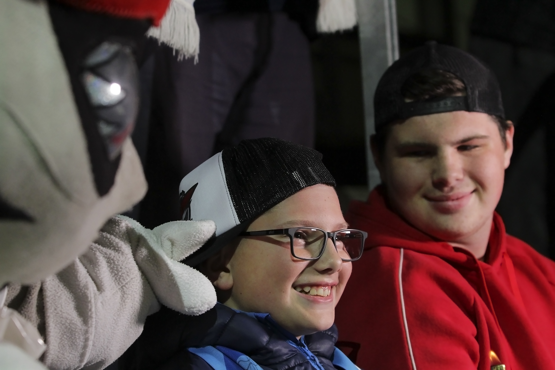 Tradiční „fandění“ kotle se šálami nad hlavami