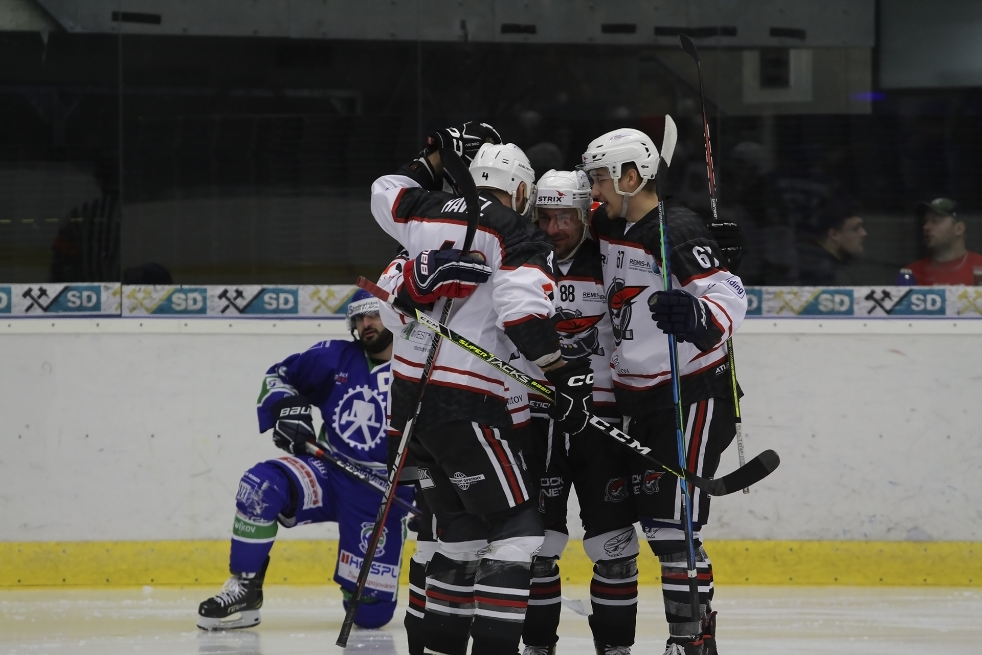 Hokejová dvojčata Viktor Hübl – František Lukeš se radují z gólu